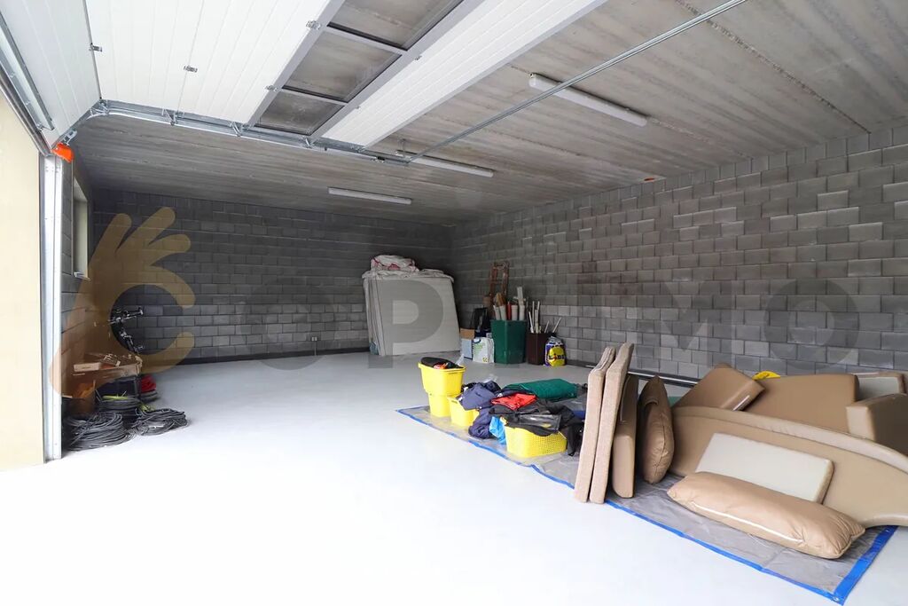 Napojeno na veškeré inženýrské sítě (vyjma plynu, který v obci není vybudován). Městská kanalizace i vodovod, potrubí již v domě roztažené. Studna na pozemku, jímka na dešťovou vodu, elektřina zavedena a částečně roztažena. Uzavřený dvorek (226 m2) poskytuje soukromí a lze z něj přejít do nově vybudované obrovské garáže (84 m2) s velkými průmyslovými garážovými vraty (šíře 5,081 m) na dálkové ovládání. Garáž je vyzděná z tvárnic s integrovanou tepelnou izolací a se zateplenou střechou. V garáži je zavedena elektřina 230 a 400 V. Šířka garáže 11,5 m, hloubka 7,3 m.