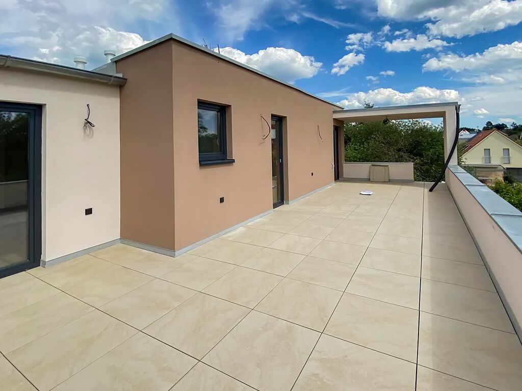 Nabízíme k pronájmu luxusní byt 5+kk s obrovskou terasou 41,5 m2, s dvěma parkovacími stáními. Byt se nachází v uzavřeném areálu dvou viladomů s celkem deseti byty, jedná se o celé patro většího domu. V kuchyni je tři roky stará kuchyňská linka, byt má dvě toalety, velká koupelna je se sprchou. Vytápění je podlahové tepelným čerpadlem, v létě je možnost využít tepelné čerpadlo na chlazení. Byt je volný od l1.listopadu 2025.
