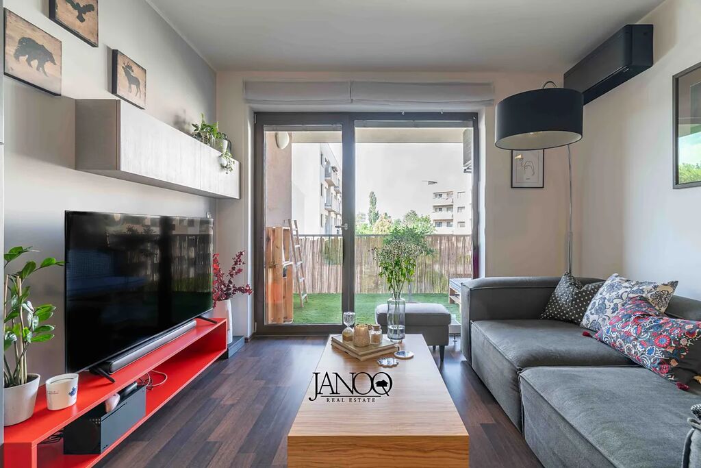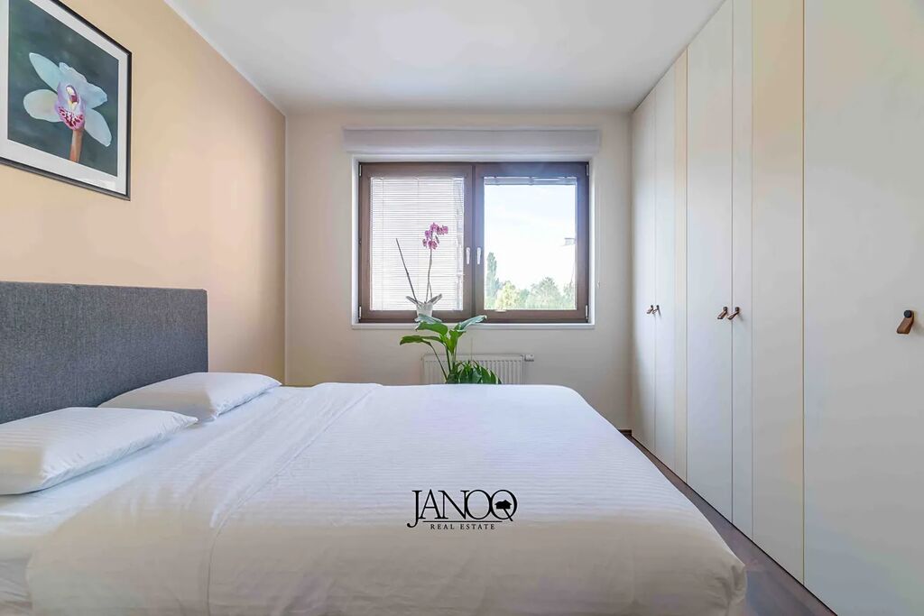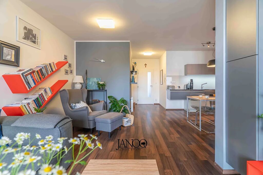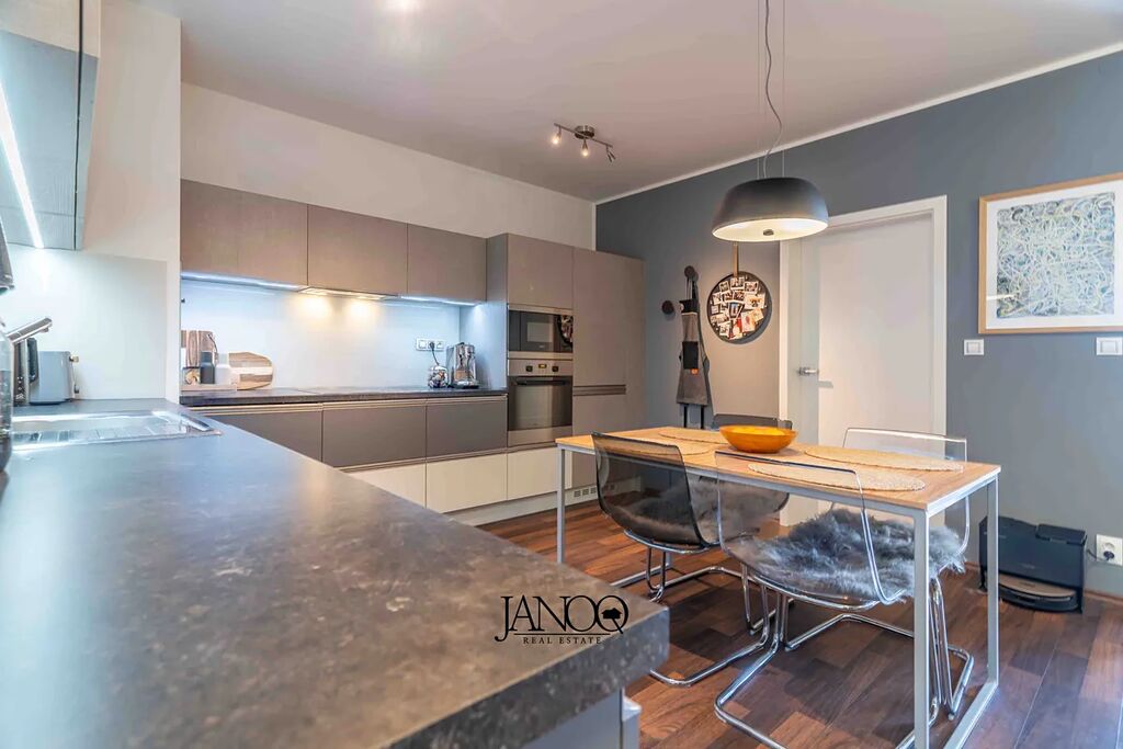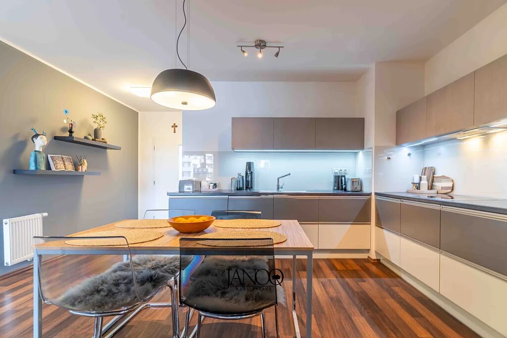 Podlahy jsou kombinací plovoucích podlah a keramické dlažby. Vytápění je dálkové. Kvalitní kuchyně je dělaná na míru a obsahuje vestavěné spotřebiče včetně myčky. V obýváku je klimatizace, která se postará o vychlazení většiny bytu a v zimě slouží jako úsporná varianta topení. V bytě je i optický internet 1Gb/s.