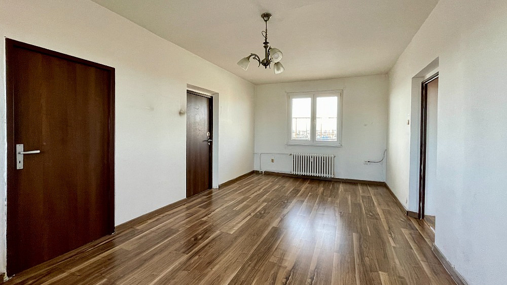 Byt zahrnuje tři samostatné pokoje, když obývací pokoj je velmi slunný, osvětlený z obou protilehlých stran a prostorná kuchyň, což nabízí dostatek prostoru pro rodiny či páry hledající domov s několika místnostmi. Byt má zděné jádro, koupelnu s vanou a WC je umístěno samostatně. Jedná se o ideální bydlení pro ty, kteří preferují bydlení ve vyšších patrech, s krásným výhledem a pocitem soukromí. K bytu také náleží sklepní prostor, který poskytuje další úložné možnosti.