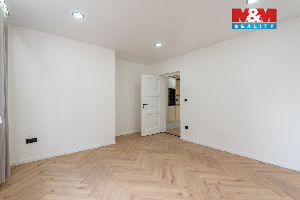 Kuchyň je vybavena spotřebiči značky Whirlpool a navazují na ni dva neprůchozí pokoje. V celém bytě pak zaujmou detailně řešené napínané stropy, které dodávají interiéru nadčasový vzhled.