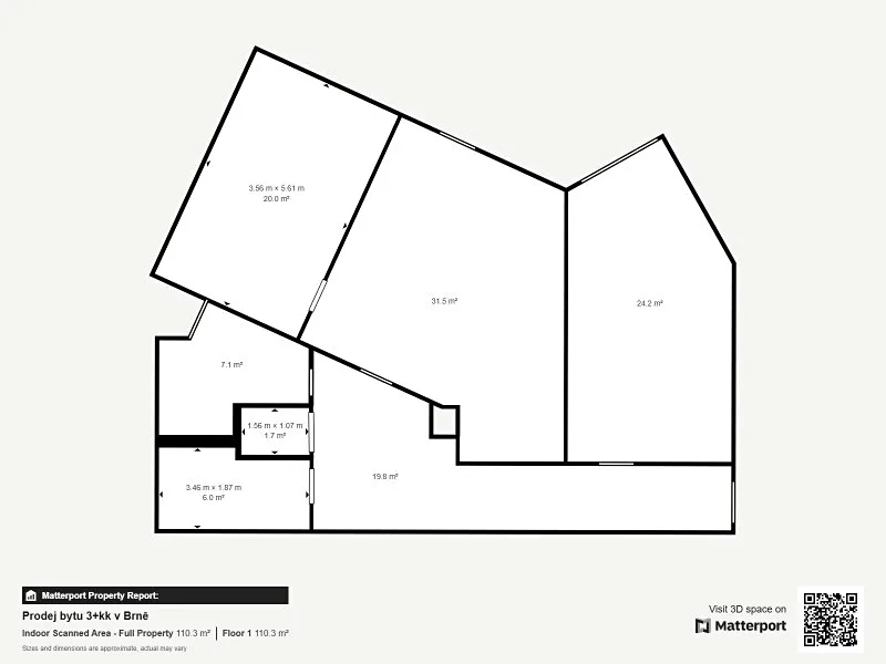 Prostorný byt o dispozici 3+kk s celkovou užitnou plochou 109,27 m² (bez balkónu a sklepa). Byt se nachází ve 2. nadzemním podlaží bytového domu v klidné lokalitě Brno – Královo Pole, na ulici Mojžíšova, přístup z ulice Žleb.