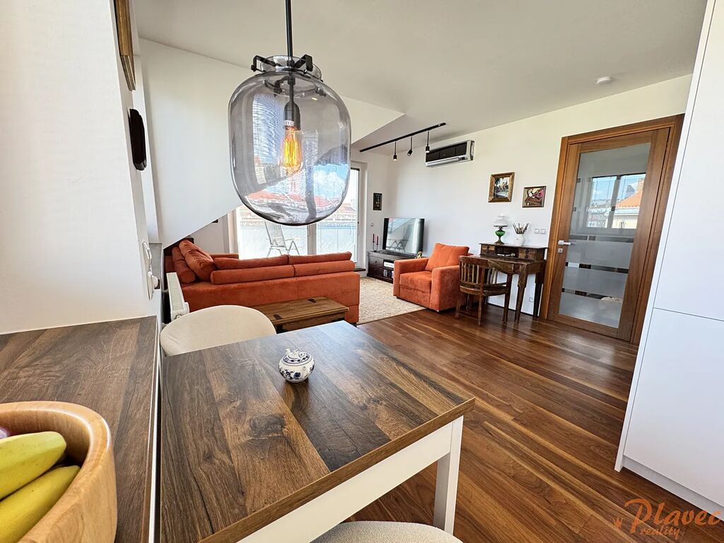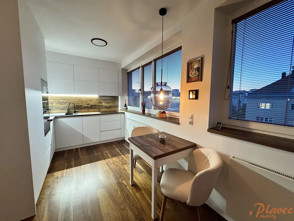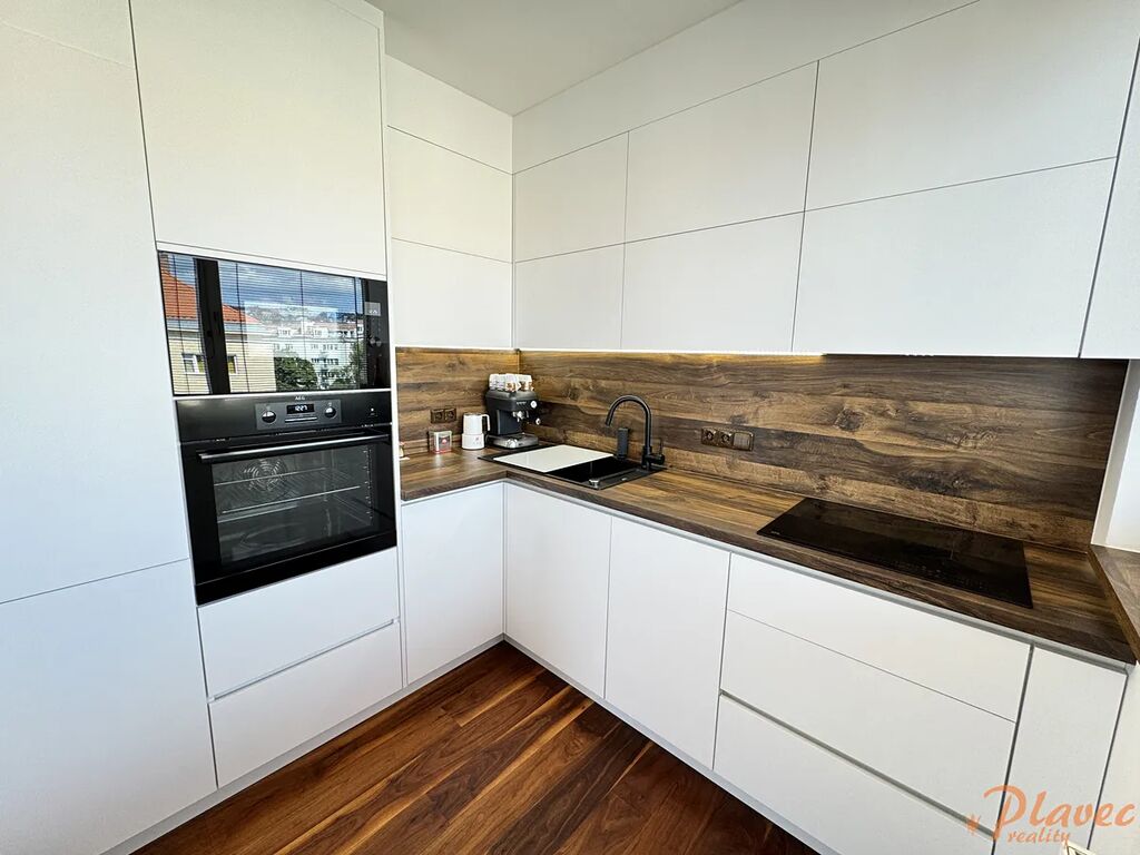 Vytápění bytu je centrální s podlahovým vytápěním v koupelně. V bytě je v obou pokojích klimatizace (v létě ochlazuje, v zimě ohřívá vzduch). Pro vstup do domu je videotelefon. Byt disponuje vkusným, moderním vybavením. Jsou zde dřevěné podlahy, dřevěná okna s novými žaluziemi s texturou přírodního dřeva, dřevěné dveře italské značky Pivato, v koupelně moderní kombinace vany a sprchového koutu. V bytě je nový nábytek na míru v bílém sametovém matu: kuchyňská linka, komora, ložnice včetně pracovního a úložného prostoru v kombinaci masiv dub, vestavěná skříň, botník. Vše nové a v záruce včetně spotřebičů. V kuchyni je extra velká vestavná lednice s mrazákem Whirlpool - systém otevírání pouhým dotykem, dále dřez a baterie Blanco, vestavné spotřebiče AEG, včetně indukční desky. Bezpečnostní vstupní dveře. Po dohodě může zůstat i veškeré další vybavení