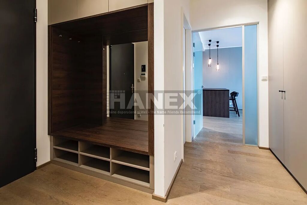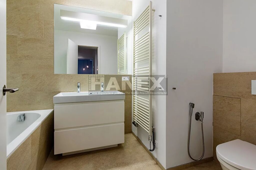 Moderní zařízený byt s krásným výhledem do zeleně. Světlý a prostorný byt 2+kk s terasou v luxusní rezidenci v Praze 4 – Hodkovičkách. Příjemné bydlení v zeleni v blízkosti centra, snadná dostupnost významných sportovních a volnočasových center – golf, tenis, squash, cyklostezky a trasy pro in–line bruslení u Vltavy. Moderní byt o velikosti 63,8 m2 se nachází ve 3. patře a skládá se z prostorného obývacího pokoje (35 m2) s kuchyňským koutem a vstupem na terasu (14,5 m2). Dále je zde ložnice, koupelna a úložná komora. Plně vybavená kuchyňská linka, vestavěné skříně v ložnici a chodbě. Orientace bytu na západ do zeleně. Byt je osazen hliníkovými okny s předokenními žaluziemi, nadstandardní provedení vnitřních mezibytových příček, které zaručují zvukový komfort bydlení, videotelefon s napojením na recepci. Podlahové vytápění v celé jednotce, dřevěné parketové podlahy od rakouského výrobce, zařizovací předměty v koupelně – Villeroy and Boch, byt je připojen na recepci a centrální pult ochrany. K bytu náleží parkovací místo v garáži a sklep. V budově je recepce s ostrahou 24 hodin, kamerový systém, společenská místnost, ping–pong, vinotéka k využití pro rezidenty.