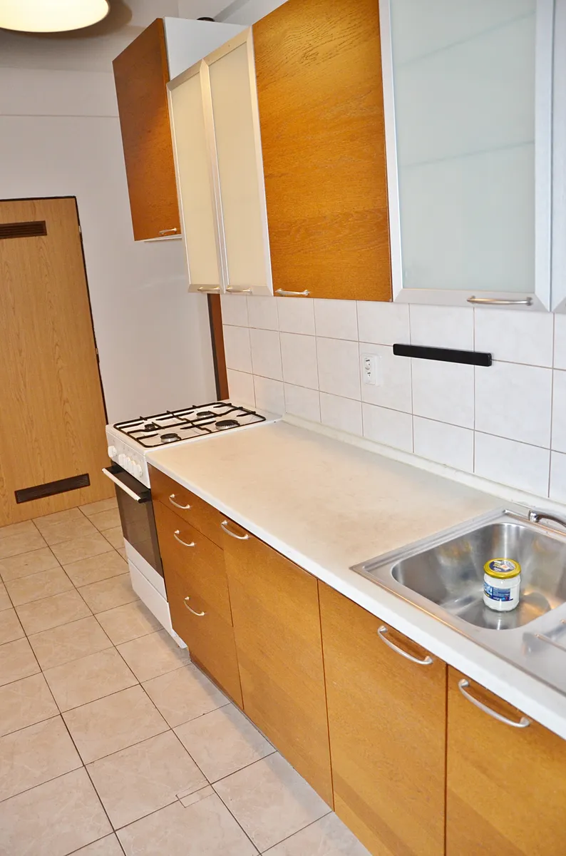 Nabízíme k pronájmu byt 2+kk se dvěma neprůchozími pokoji v Sedlčanské ulici v Praze 4, na metru C stanice Kačerov. Popis: v předsíni je kuchyňská linka se sporákem + dva samostatné neprůchozí pokoje. Byt se nachází ve 3.patře domu bez výtahu orientovaný do zahrádky s plochou 55m2 (jižní strana a velmi světlý). Nabízený byt je nezařízen. Na podlahách v jednom pokoji parkety, v druhém plovoucí podlaha, jinak dlažba. V koupelně je vana, WC je samostatné. Byt má komoru + sklepní kóji. Topení WAW. Internet: občanské sdružení, fy Airwaynet, O2. Pouze dlouhodobě. Majitel upřednostňuje českou či slovenskou klientelu, u cizinců pouze trvalý pobyt v ČR či pas EU.