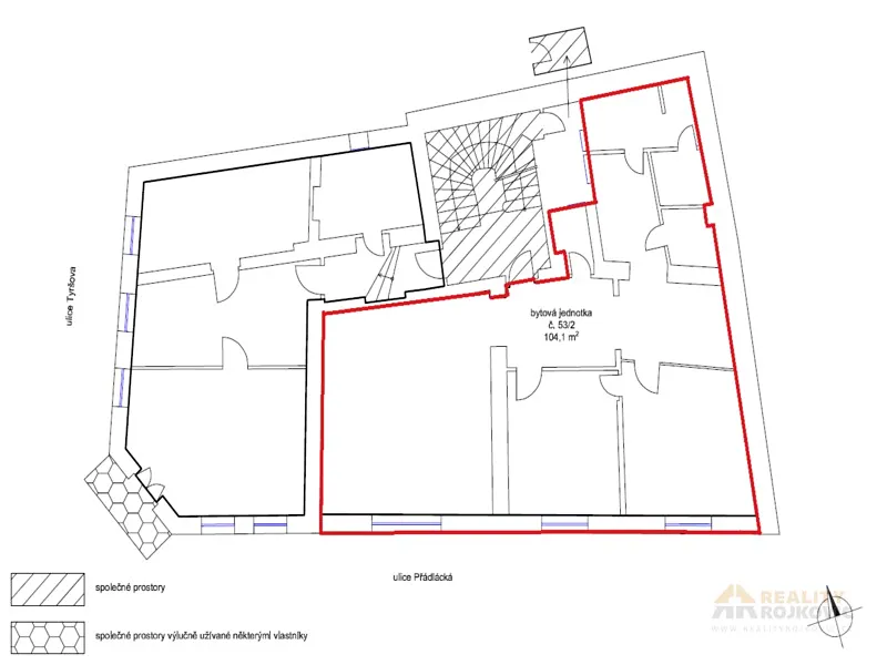 Prodej prostorného bytu 3+1 s celkovou plochou 104 m2 ve II. NP bytového domu v ulici Přadlácká. Dispozice: vstupní chodba, 3x obytná místnost, koupelna, WC, kuchyně a 2x komora. Vytápění ústřední - elektrokotlem, ohřev vody - el. bojler. Byt je připraven k rekonstrukci dle vlastních představ. Třetí nadzemní podlaží tvoří prostorné víceúrovňové podkroví, které je možné s jednotkou stavebně propojit.