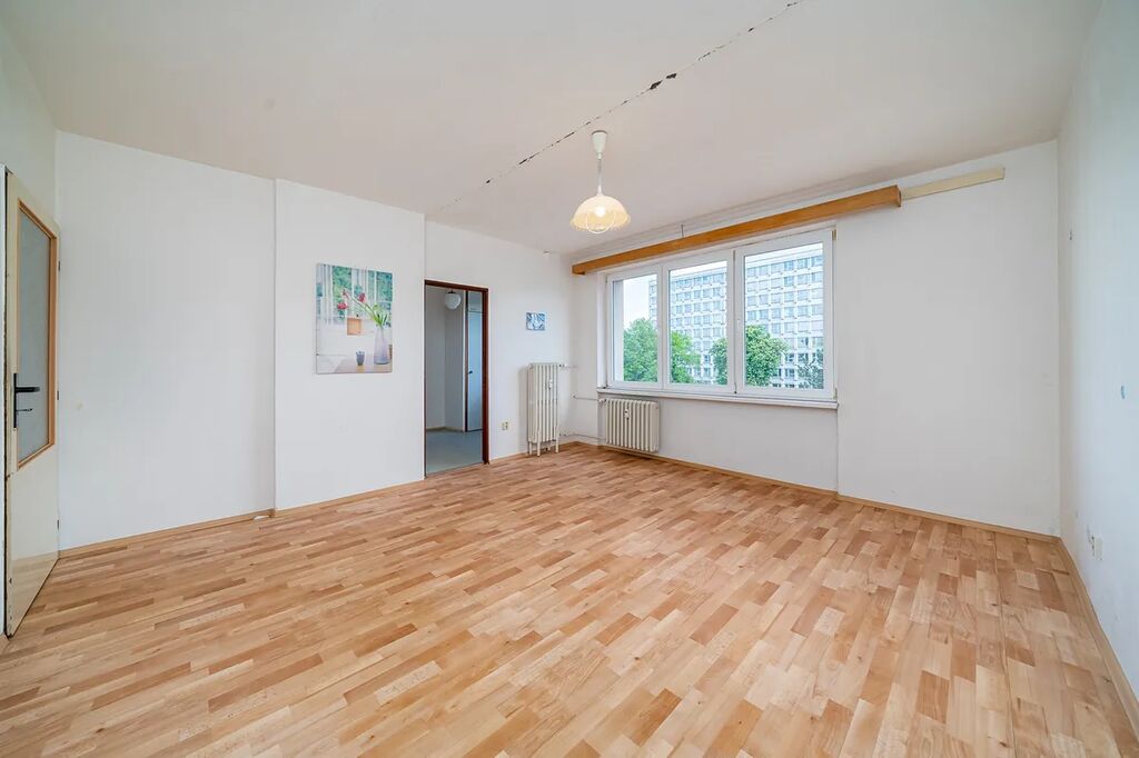 Byt je složen z velkého pokoje, samostatné kuchyně, prostorné chodby, koupelny a WC. K bytu náleží sklep v suterénu.