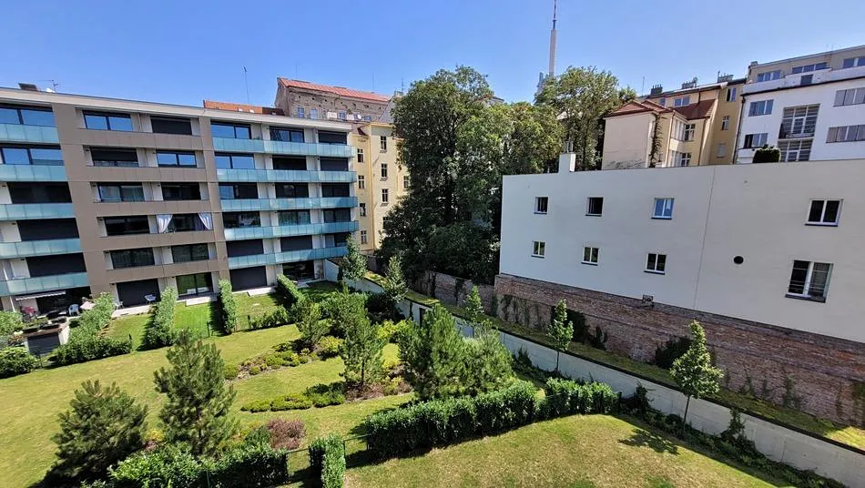 Centrum města s veškerou občanskou vybaveností, zastávka MHD před domem, ale i blízkost parku a zeleně (Riegrovy sady 5 minut pěšky), v sousedství Vysoké školy ekonomické v Praze, v okolí mnoho restaurací a všechny služby.