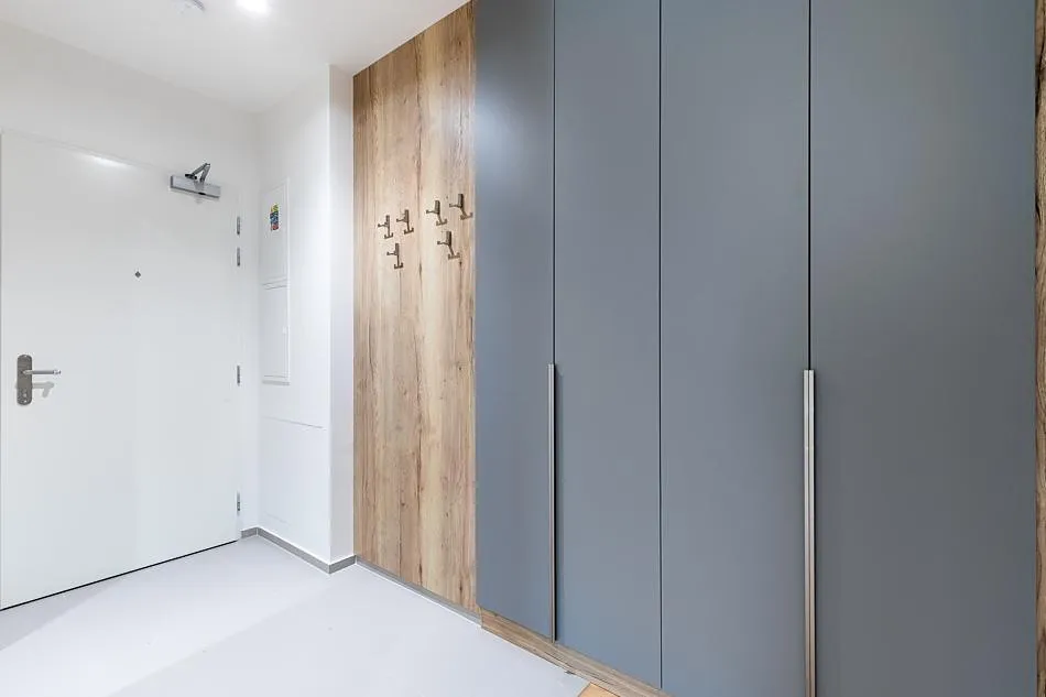 The apartment is suitable for own living, but also as an investment for rent. It is furnished with a kitchen unit including appliances (fridge, oven, induction hob, microwave oven, dishwasher), a built-in wardrobe in the hallway, bathroom furniture, including lighting and curtain brackets. It is possible to purchase a garage space in the building with the apartment.