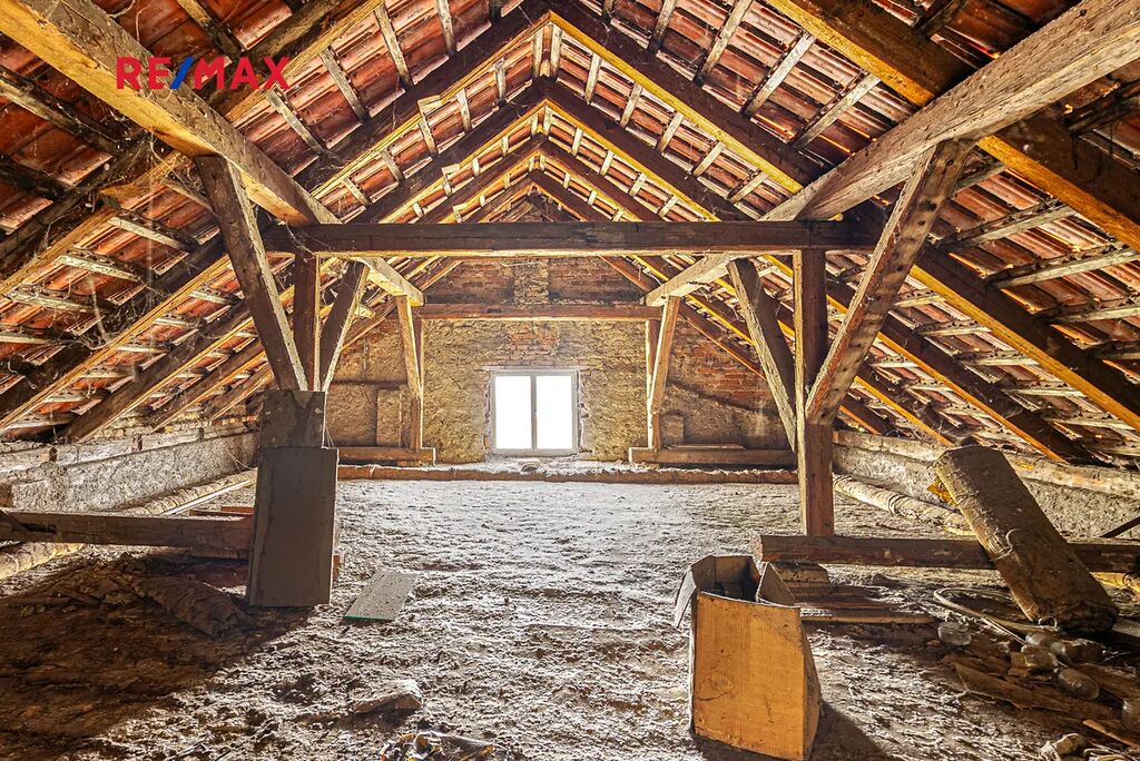• Chodba, kuchyň, pokoj, ložnice, obývací pokoj, balkon, chodba, prostorná půda, která lze předělat na další obytnou část.
