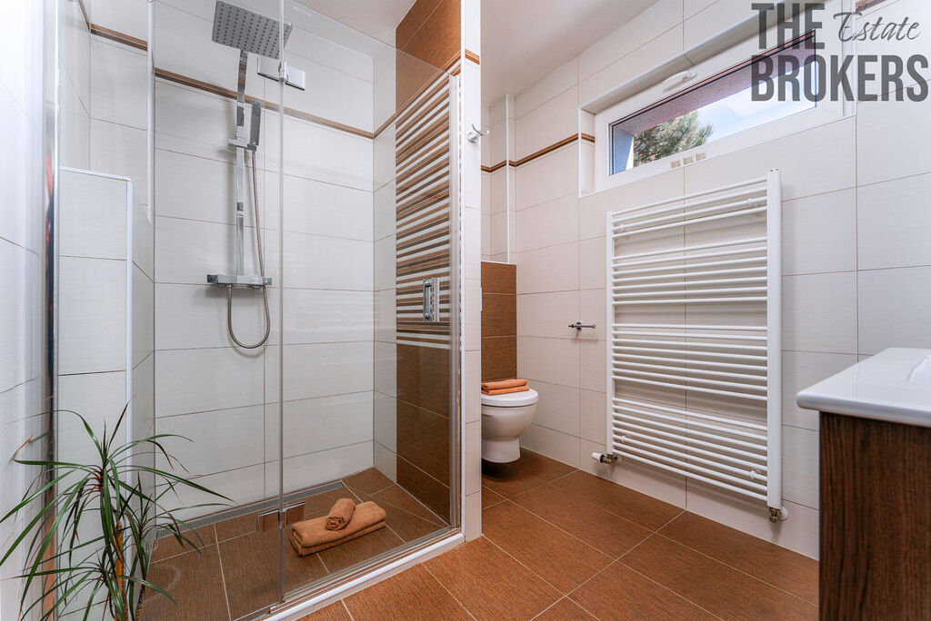 V přízemí Vás přivítá moderní kuchyně vybavená kvalitními spotřebiči, která plynule navazuje na útulný obývací pokoj s balkonem – ideální místo pro rodinné chvíle i relaxaci. Dále zde najdete jeden pokoj, koupelnu se sprchovým koutem a samostatné WC.