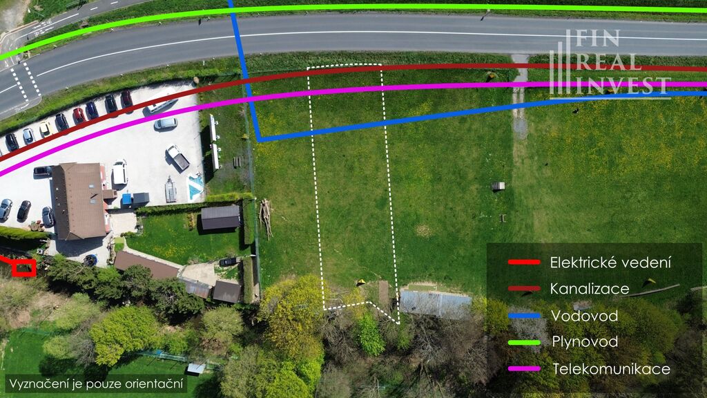 Veškeré inženýrské sítě v blízkosti pozemku (vodovod, kanalizace, plyn, elektřina, telekomunikace)