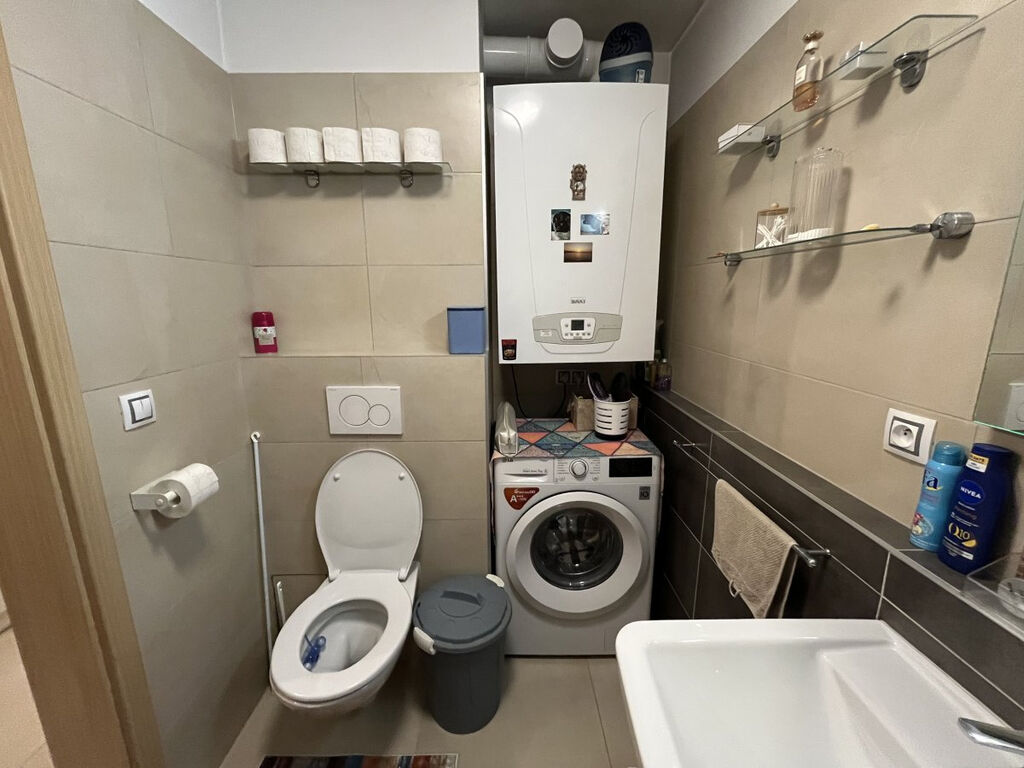 Byt se nabízí částečně vybavený dle fotografií. Kuchyně je vybavena lednicí, elektrickou troubou, varnou deskou, myčkou, digestoří a dostatečným množstvím úložných prostor. Obývací část disponuje rozkládací pohovkou, konferenčním stolkem a TV stěnou. V koupelně je vana, umyvadlo, toaleta a pračka.