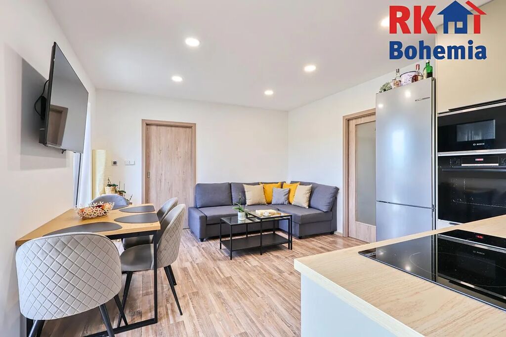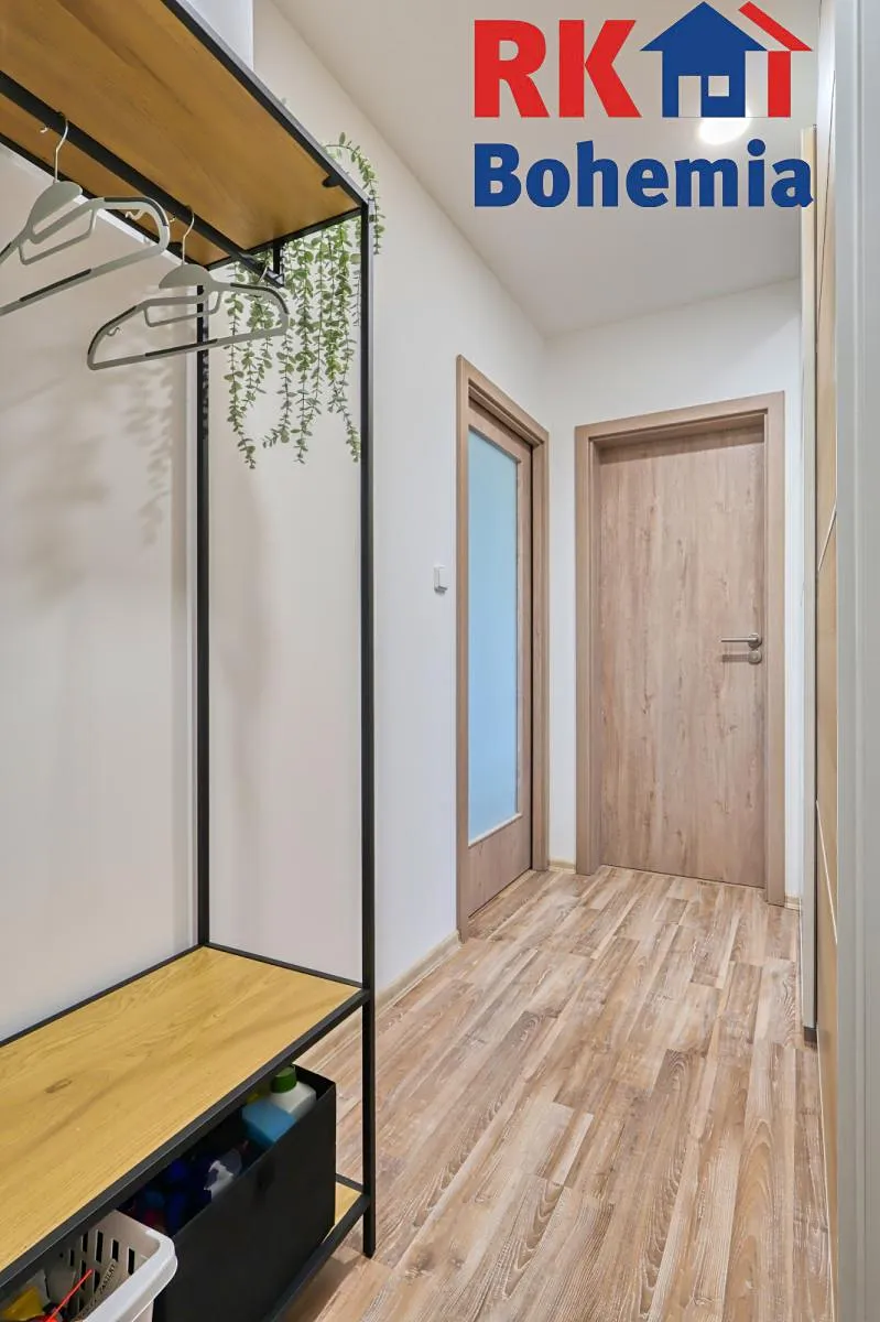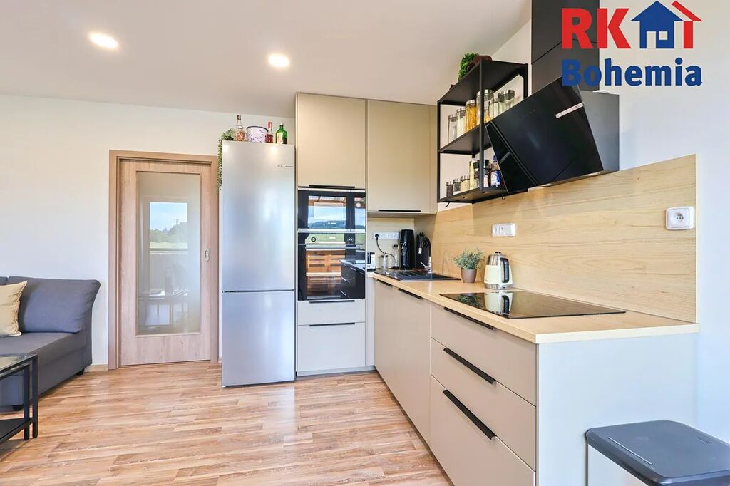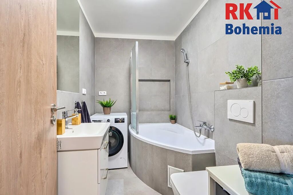 Součástí kuchyňské linky jsou vestavěné spotřebiče (el. trouba, mikrovlnná trouba, indukční varná deska, myčka) a digestoř. V koupelně je umístěna rohová vana se zástěnou, umyvadlo se skříňkou, WC a příprava na pračku.