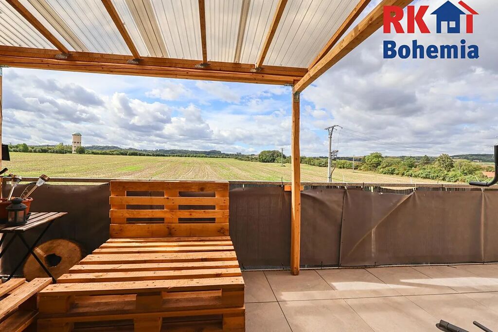 Z kuchyně i z pokoje se vchází na prostornou terasu skýtající klidný a krásný výhled do okolní zeleně. Ideální místo pro ranní kávu nebo večerní grilování.