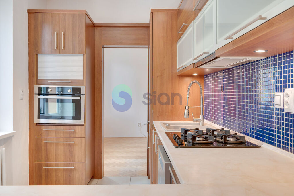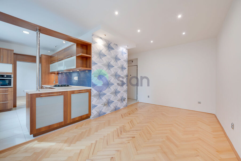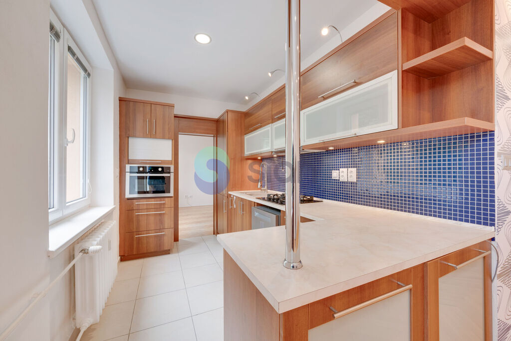 Bytová jednotka prošla kompletní rekonstrukcí: kuchyňská linka vyrobená na míru s velkým množstvím úložných prostor a zabudovanými spotřebiči: lednice, mrazák, plynová varná deska, elektrická trouba a menší myčka. Prostorná koupelna osazena vanou, vybavena přípojkami na pračku, závěsnou toaletou. Rekonstrukcí prošly rozvody (elektřina v mědi), podlahy (zachovalé parkety), čerstvě vymalováno a připraveno k nastěhování.