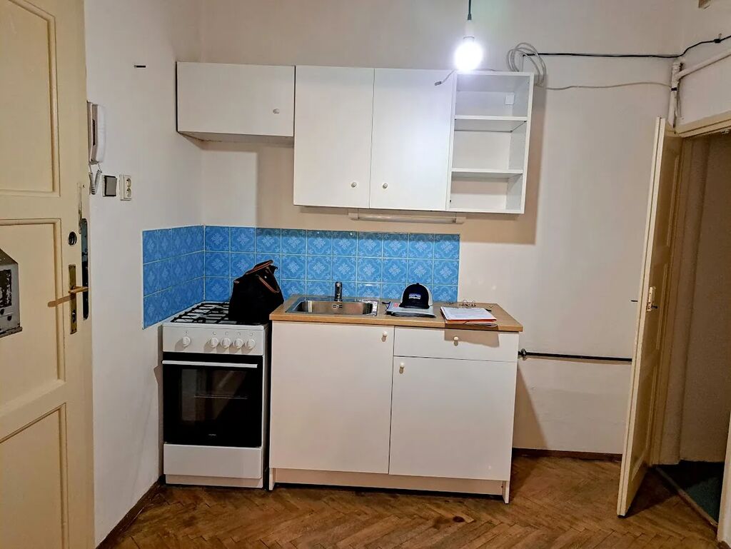 Vybavení: nezařízený byt, v předsíni zánovní linka, plynový sporák. V koupelně vana, nová revidovaná karma, okno. V menším pokoji je balkon do vnitrobloku na SV a komora;