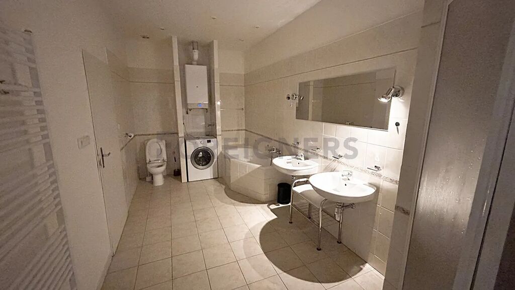 Koupelna – sprcha, vana, dvě umyvadla, WC, pračka
