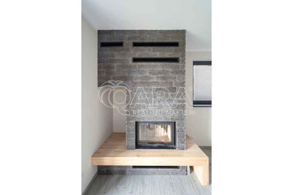 • Podlahové vytápění s napojením na el. kotel Protherm, v obývacím pokoji krb. V ložnici a obývacím pokoji klimatizace, v jídelně lokální rekuperace.