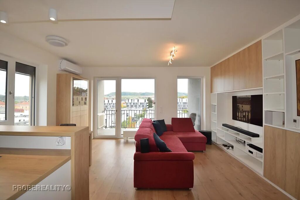 K pronájmu moderní, plně zařízený byt 3+kk s balkonem, sklepem a parkovacím stáním, umístěný ve 3. patře novostavby, nacházející se v jedné z nejlepších lokalit Berouna, rezidence Berounské terasy, ulice Duslova.