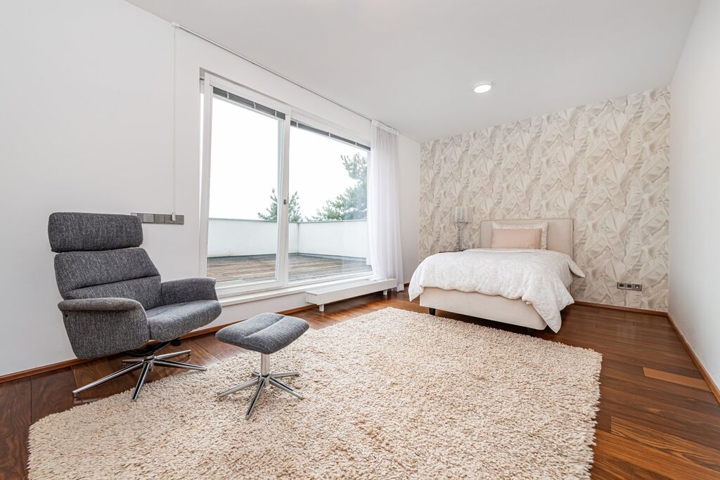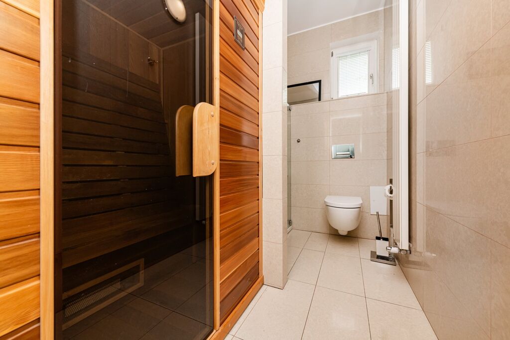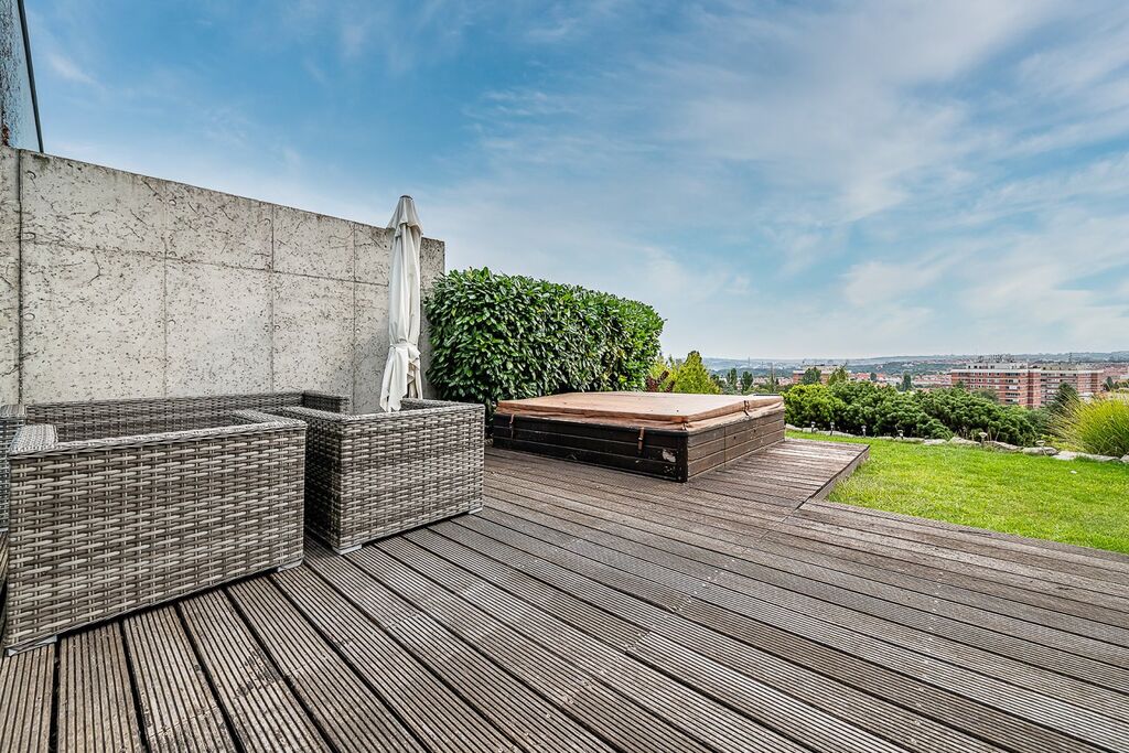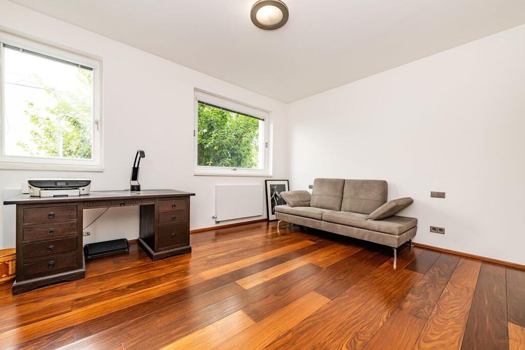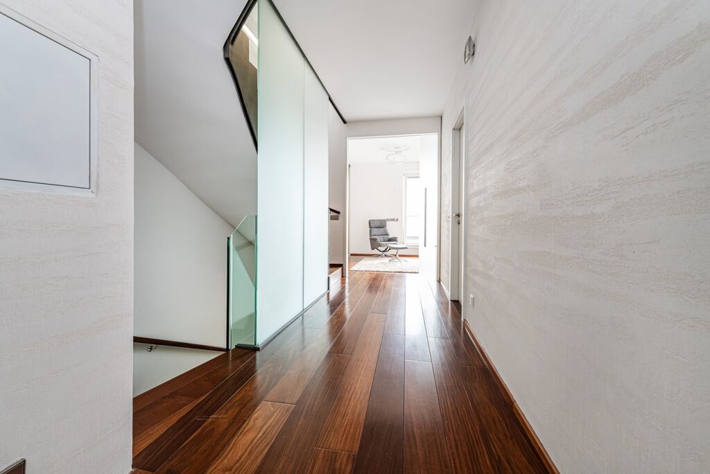 V pokojích jsou dřevěné podlahy, v koupelnách je umělý mramor. Součástí vybavení je bezpečnostní zařízení, podlahové topení, infrasauna, venkovní jacuzzi, elektricky ovládané předokenní rolety. Garáž je pro jeden vůz a jedno parkovací stání je na pozemku.