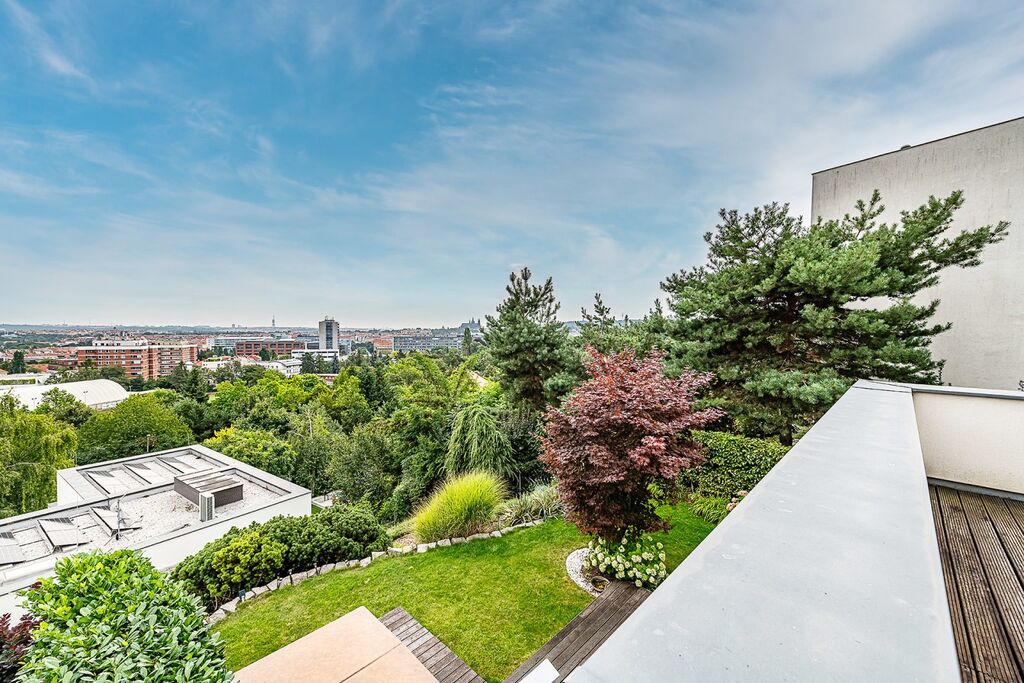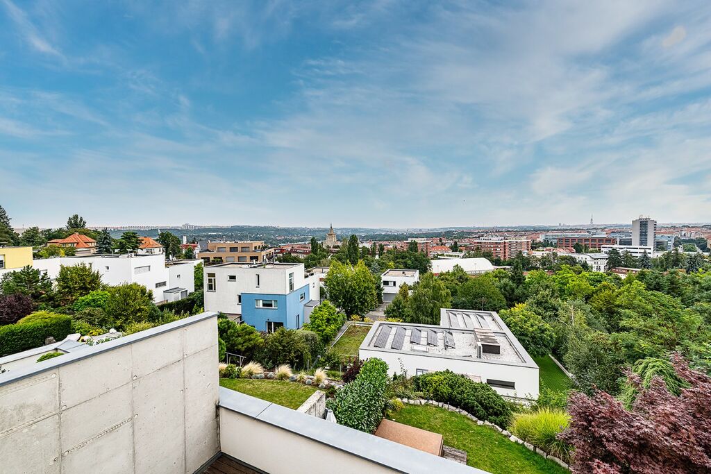 Rodinný dům s prostorným interiérem a s nádherným výhledem na Prahu a Pražský hrad v Praze 6 - Dejvice. Dům má dispozici 4+kk s velkorysou obytnou plochou 219 m², se dvěma terasami (celkem 37 m²) a krásnou udržovanou zahradu o výměře 390 m². Celková výměra pozemku činí 501 m². Dům se nachází v exkluzivní lokalitě Hanspaulka, jedné z nejprestižnějších a nejklidnějších rezidenčních čtvrtí Prahy.