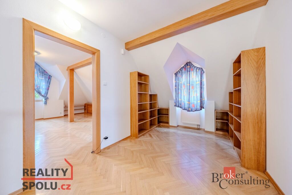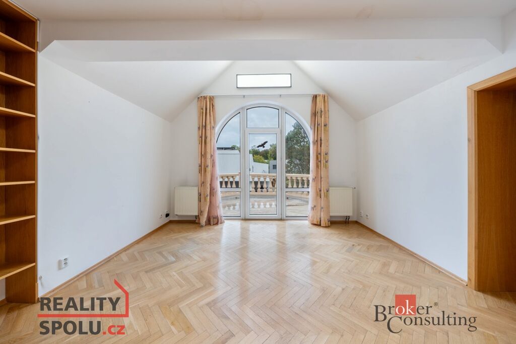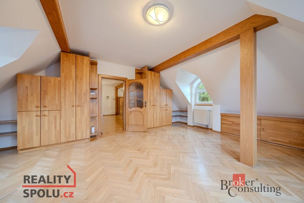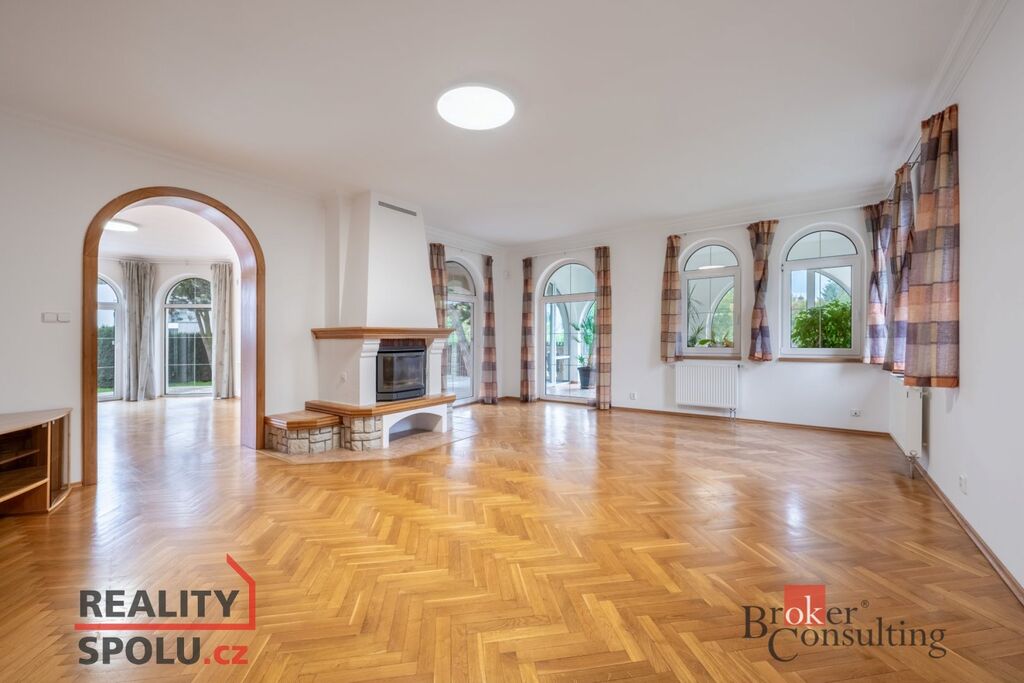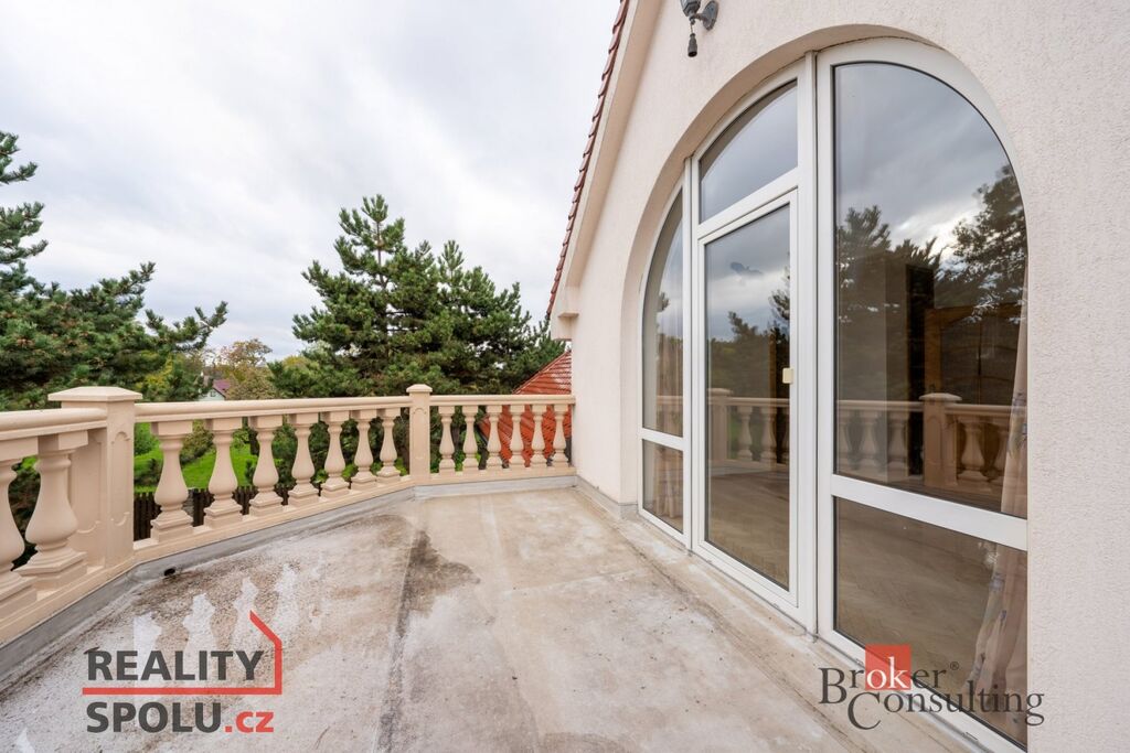 Nabízíme k pronájmu prostornou a reprezentativní vilu o užitné ploše 369 m², postavenou v roce 2006. K vile náleží terasa o ploše 88 m², garáž pro dvě auta (35 m²) a zahradní domek cca 30 m². Celková rozloha pozemku přesahuje 1 000 m².