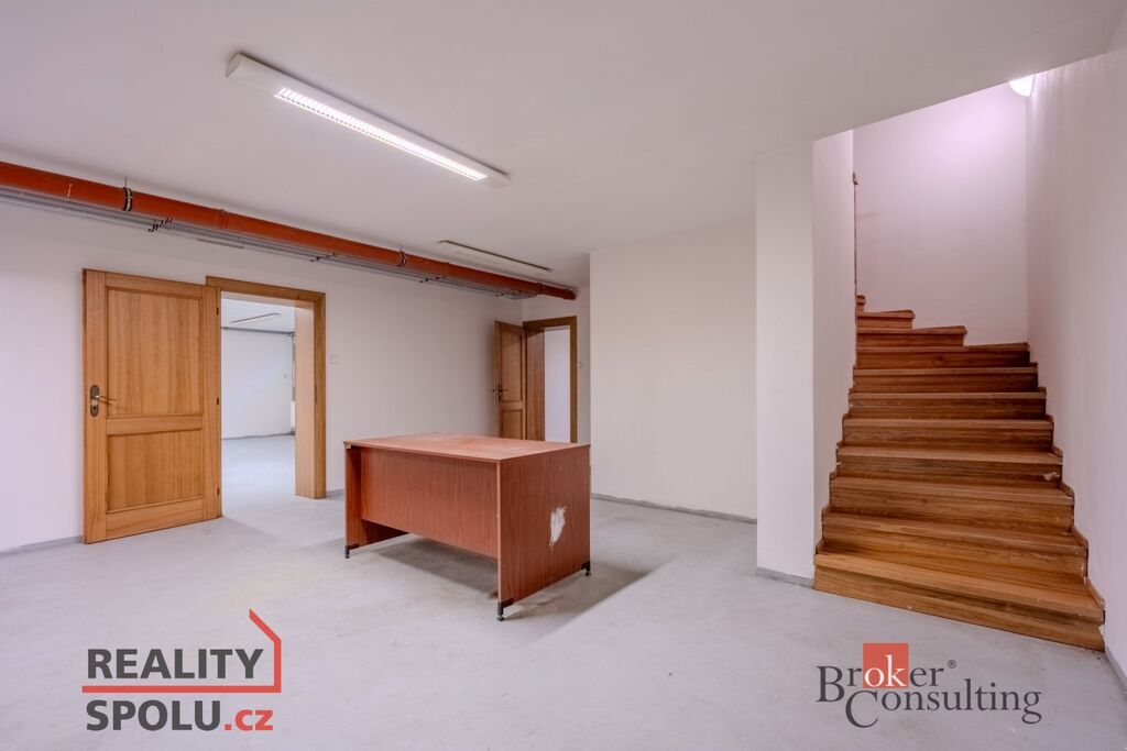 Součástí je také suterén (141 m²), který lze využít jako kancelářské nebo skladové prostory. Před domem je vlastní parkoviště pro minimálně 5 aut.