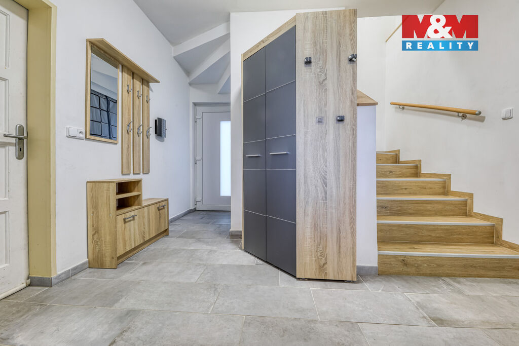 Prodej rodinného domu po rekonstrukci interiéru v klidné části obce Domaslav. Tento samostatně stojící dům s dispozicí 5+kk o užitné ploše 129 m² je ideální volbou pro rodiny hledající pohodlí a soukromí. Dům je celkově podsklepený a ve sklepě naleznete příjemné posezení u baru. Moderní interiér zahrnuje nová plastová okna, novou koupelnu s podlahovým topením, schodiště, elektřinu v mědi a kuchyňskou linku na míru s elektrospotřebiči. Ve 2. nadzemním podlaží se nacházejí dva prostorné pokoje a půdní prostor. Zahrada kolem domu je nenáročná na údržbu a nabízí i kůlnu pro uskladnění věcí. Dům vytápěn kamny na tuhá paliva, zavedena voda z obecního vodovodu, teplou vodu zajišťuje bojler. Občanská vybavenost je dostupná v blízkých městech, a nájezd na dálnici D5 je vzdálen pouhých 30 minut jízdy autem. Tento dům je skvělou příležitostí pro klidné bydlení v blízkosti přírody. Více informací a domluva prohlídky u makléře. Případné financování pro Vás zdarma zajistíme přes naší divizi.