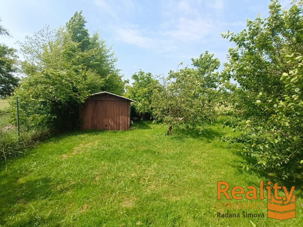 v klidné části na okraji obce nabízíme k prodeji částečně oplocenou zahradu s výměrou 782 m2. Jedná se rovinný pozemek o šířce 9,5m, jehož součástí plechový domek pro uskladnění nářadí 2,5x5m a udírna.