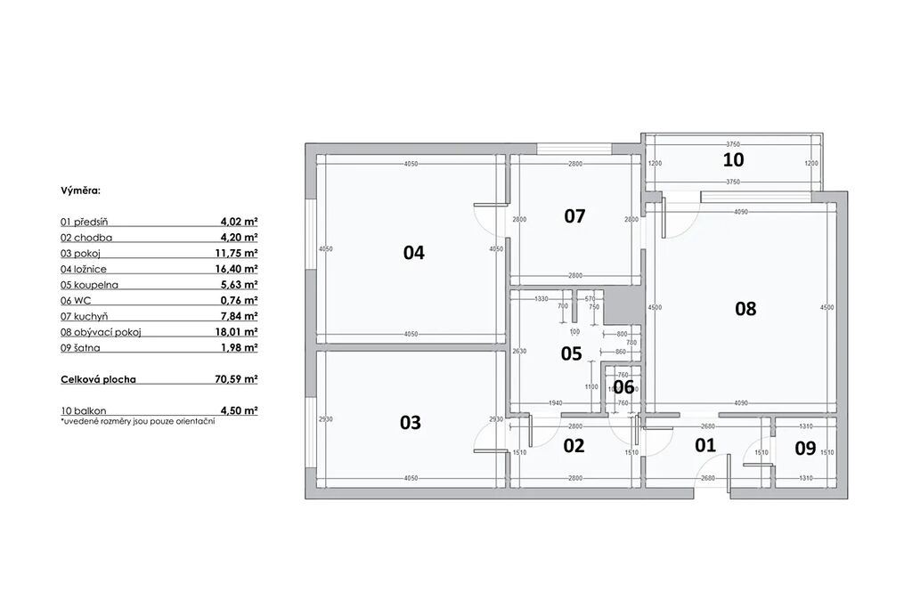 Byt se pyšní nejen skvělým rozložením, ale světlostí díky jihozápadní orientaci. Dispozice bytu zahrnuje obývací pokoj, dvě neprůchozí ložnice, koupelnu, samostatné WC a praktickou komoru. Z obývacího pokoje je přístup na zasklenou lodžii o velikosti 4,5 metru čtverečního, která umožňuje pohodlné posezení s nádherným výhledem na okolí bez ohledu na počasí.