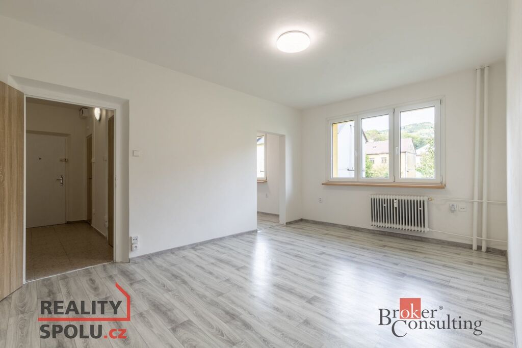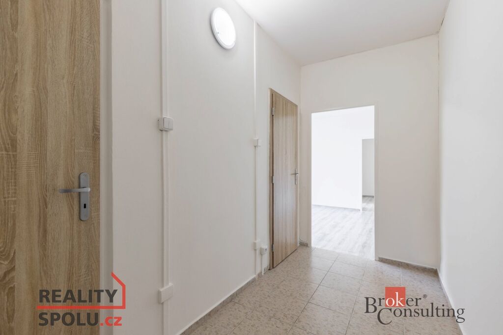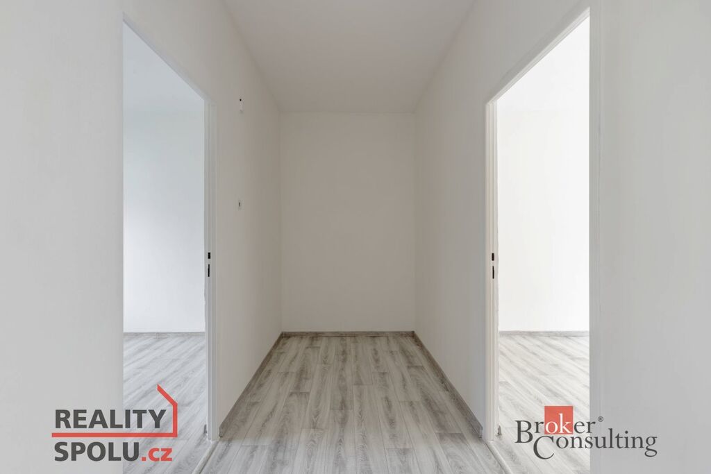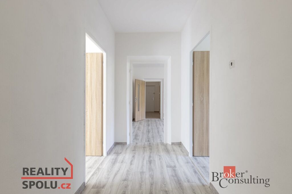 Dispozice bytu je velmi praktická. Prostorná vstupní chodba poskytuje dostatek místa pro vybudování úložných prostor. Kuchyňský kout je chytře propojený s velkorysým obývacím pokojem. Další dva pokoje jsou díky předsíni, kde je také možné vybudovat velkou skříň, či malou šatnu, neprůchozí. K bytu náleží sklepní kóje o velikosti 2,20 m².