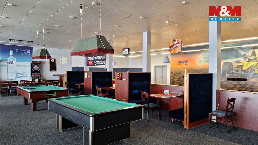 Nabízíme k dlouhodobému pronájmu prostory restaurace s bowlingem v IINP komerčního domu v České Lípě, včetně vybavení interiéru, stoly, židle, bowling. Na ploše 645 m2 jsou 3 bowlingové dráhy, 2 kulečníky, bar s výčepem, sociální zázemí s WC a sprchovým koutem. Skladová místnost v INP. Kapacita posezení až pro 80 osob. Budova je napojena na veřejnou kanalizaci a vodovod. Vytápění je řešeno kotlem na tuhá paliva, zajišťuje Pronajímatel. Cena pronájmu 15.000,- Kč + DPH je bez záloh energií, vody, elektřiny a topení cca 8.000,- Kč - 10.000,- Kč dle spotřeby. Vratná jistin 45.000,- Kč + DPH. Případná změna využití vítána, možná domluva. Objekt je napojen na bezpečností službu. Pro bližší informace volejte makléře a domluvte si prohlídku.. Doporučuji prohlídku. Volný ihned k pronájmu.