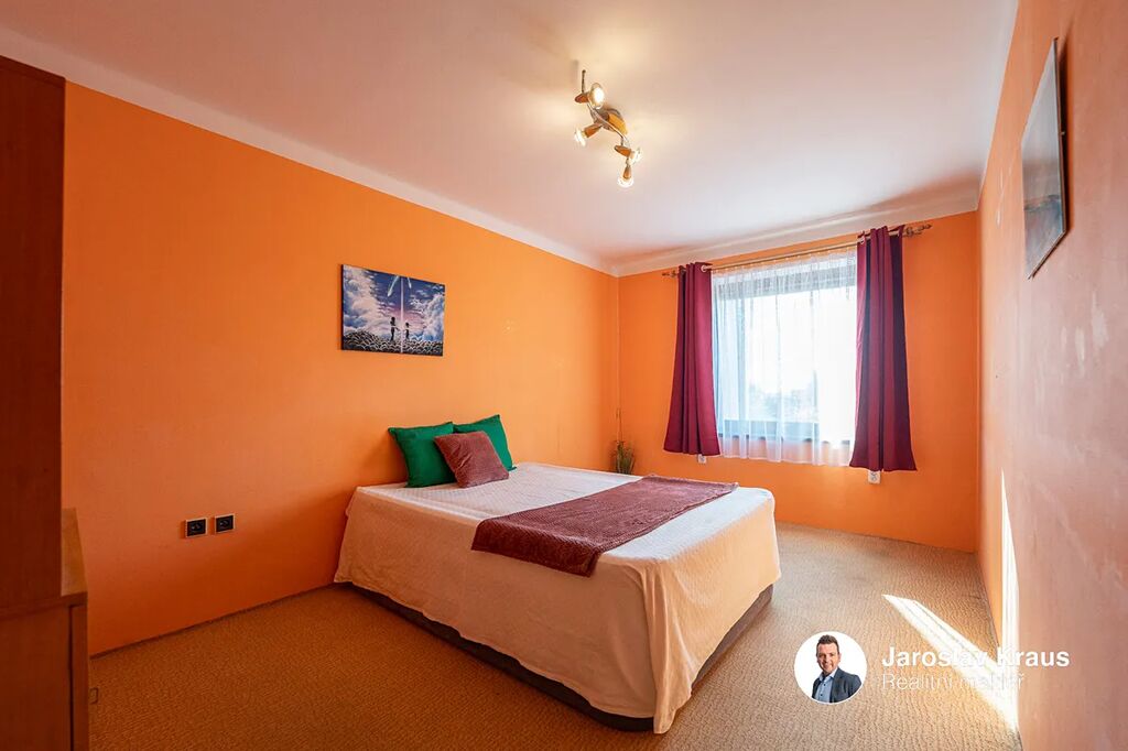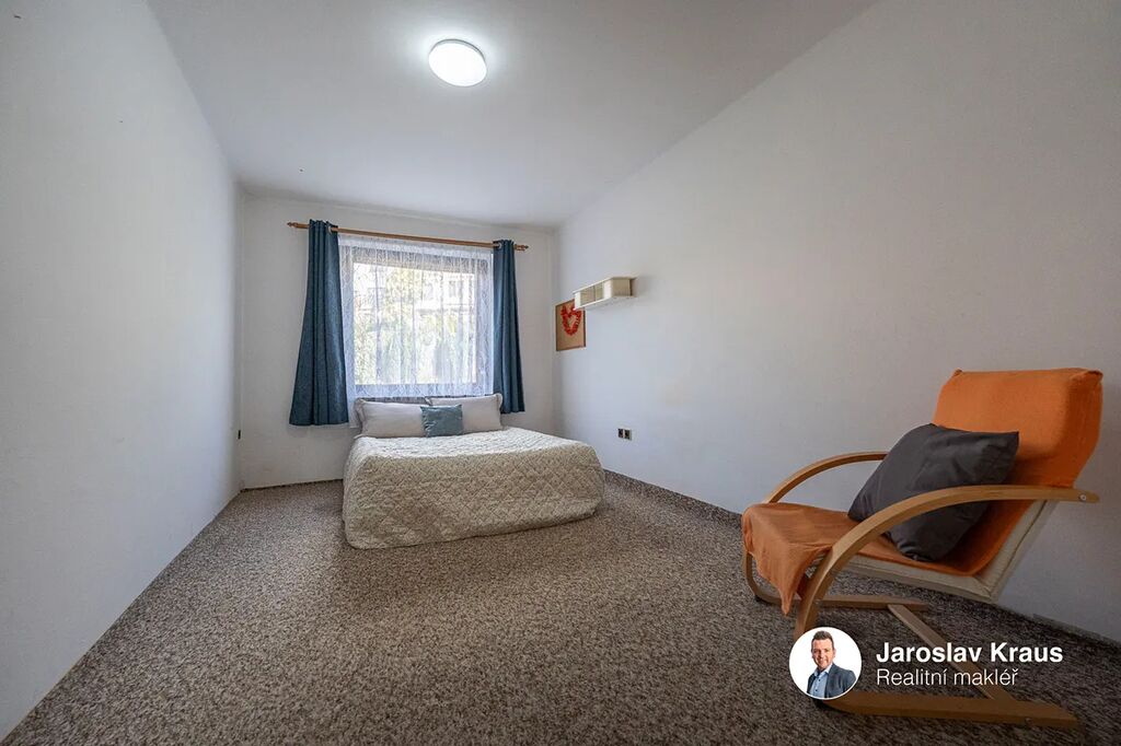Nad rámec užitné plochy budete mít k dispozici garáž, terasu, dvě lodžie, sklep o velikosti 20,3 m² a na zahradě pergolu s příjemným posezením. Nemovitost je v původním stavu, vhodná k rekonstrukci, ale obyvatelná ihned. Vytápění zajišťují odporové smyčky, ohřev vody bojler, okna jsou původní dřevěná a střecha byla v roce 2021 obnovena střešní lepenkou. K dispozici je elektřina 230/400 V, obecní vodovod i kanalizace a přístup je po asfaltové komunikaci.