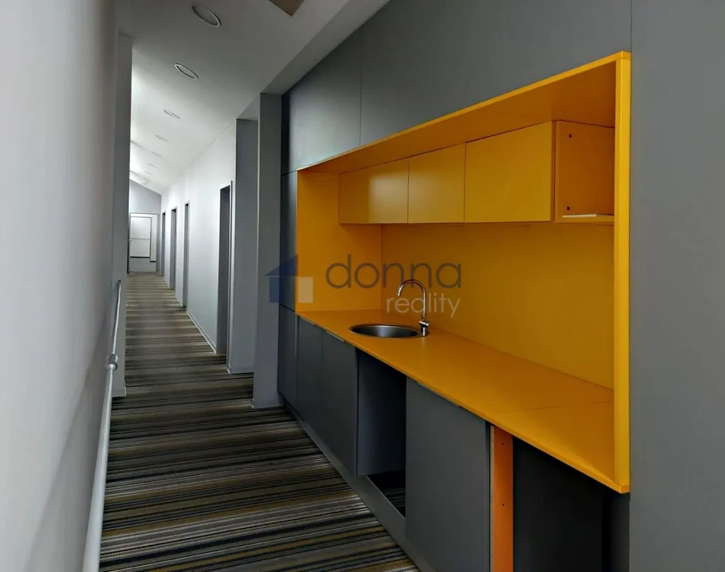 V přízemí se nachází prostorný open space o rozloze 900 m², v patře: kancelářské a skladovací prostory s kuchyňkou a WC.