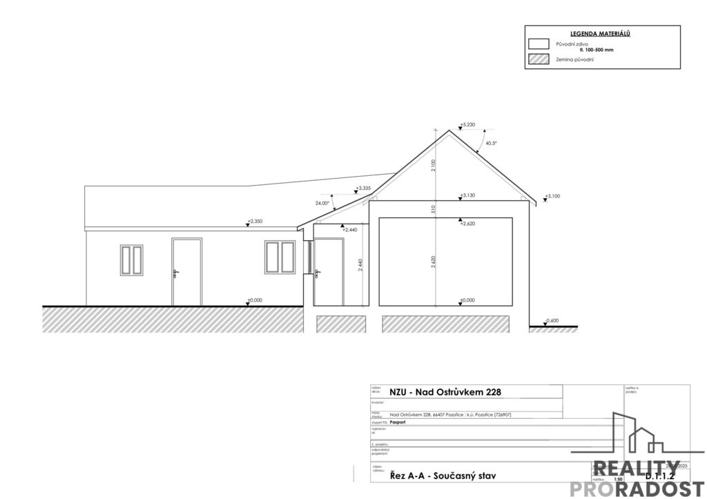 Nabízíme k prodeji řadový rodinný dům v Pozořicích. Zastavěná plocha a nádvoří o celkové výměře 120 m2 v okrese Brno- venkov , který je vhodný jako investice nebo ke kompletní rekonstrukci dle vlastních představ. Součástí prodeje je také vypracovaný stávající stav RD k čerpání dotačního titulu programu Nová zelená úsporám. Rodinný dům lze rozšířit o půdní vestavbu. Po realizaci rekonstrukce s půdní vestavbou by užitná plocha domu činila cca 70 m2 . Situace stávajícího stavu na první patro je vypracovaná projektantem s možností vyřízení dotací k rekonstrukci a výhodného financování z dotačního titulu s úrokovou sazbou 3%. Dům je částečně podsklepený. V RD je zavedená elektřina. Voda, plyn a kanalizační přípojka se nachází na hranici pozemku. Za domem se rozprostírá menší zahrádka, ideální pro relaxaci. Pozořice se nachází v okrese Brno-venkov, vzdálené přibližně 15 km východně od Brna. V obci se nachází kompletní občanská vybavenost – škola, školka, obchody, pošta i zdravotní služby. Energetický štítek nebyl dodán majitelem, proto je uvedena třída G. Pro více informací či domluvu osobní prohlídky kontaktujte makléřku.