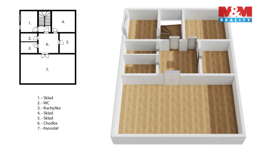 Prodej multifunkční nemovitosti se širokým využitím. Stavba je vhodná především pro podnikání – obchod, služby, kanceláře, sídlo firmy nebo menší výrobnu. K dispozici je osm parkovacích míst před hlavní budovou a další zastřešená ze zadní strany objektu. Po případné rekolaudaci může sloužit i jako nemovitost k bydlení. Oplocený pozemek je přístupný ze dvou stran po zpevněných komunikacích. Na části parcely je možné postavit další objekt. V přízemí se nachází vstupní prostor, dvě místnosti, WC, koupelna, servisní místnost, kotelna a sklad dřeva. V horním patře jsou tři místnosti, kuchyňka, WC, sklad a terasa. Objekt je ve velmi dobrém stavu k okamžitému užívání. Výhodou je nízká energetická náročnost budovy a dobrá dopravní obslužnost.