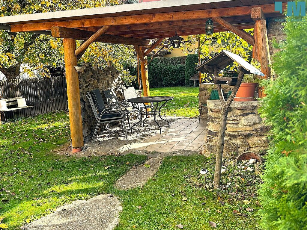 Součástí pronájmu je garáž, sklep a část pozemku za domem s venkovním posezením a krbem, které poskytuje příjemné místo pro relaxaci i letní grilování.