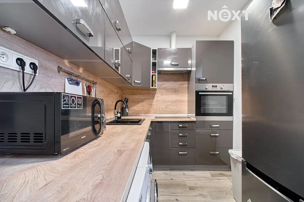 Byt je kompletně vybavený, kromě sedací soupravy, kterou si stávající majitel odváží. Kuchyň je plně zařízená, k dispozici je lednice, trouba, mikrovlnná trouba, pračka, myčka a další vybavení pro pohodlné bydlení.