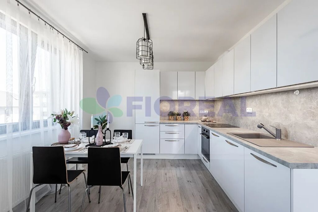 Nabízený byt 2+kk disponuje velkorysým obývacím pokojem o ploše 30,73 m², který vytváří jedinečný pocit prostoru a volnosti. Díky promyšlenému uspořádání lze při troše fantazie dispozici upravit na 3+kk, což poskytuje flexibilitu pro budoucí potřeby rostoucí rodiny nebo možnost vytvoření pracovny, ve fotogalerii najdete plánek aktuální dispozice bytu. V kuchyňské části dominuje krásná kuchyňská linka včetně kompletních vestavných spotřebičů (myčka nádobí, lednice, mrazící box, varná deska, digestoř).