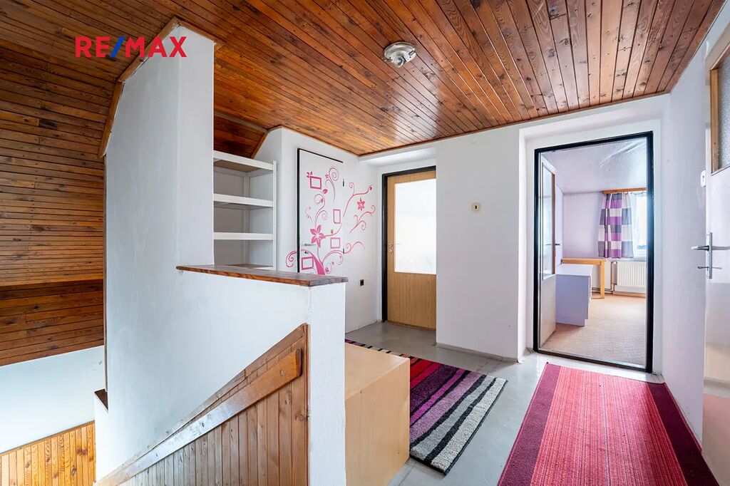 Dům je v původním udržovaném stavu, byla kompletně vyměněna okna a vstupní dveře. V 1.nadzemním podlaží se nachází vstupní hala, obývací pokoj, kuchyně, ložnice, dále samostatné WC, vstup do patra a do sklepa. Ve 2. nadzemním podlaží jsou pak dva pokoje, velká koupelna s WC, úložné prostory.
