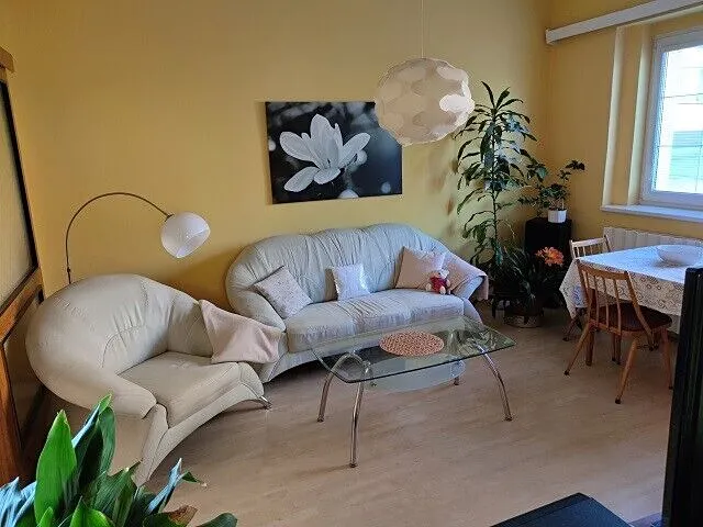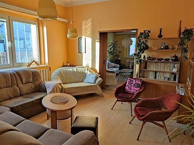 Nabízíme k prodeji samostatně stojící, rohový dům o dispozici 4+1 v lukrativní a klidné části města Kladna, Kročehlavy. V okolí domu je pouze zástavba RD. Uliční průčelí je situováno na západ, vstup do RD je ze severní strany, zahrada je orientovaná na jižní stranu. RD je přízemní s obytným podkrovím, částečně podsklepený, umístěný na rovinném pozemku. Dalšími stavbami na pozemku jsou zděný zahradní domek o zast. ploše 20,5 m2 (4,4 x 4,65 m2) a garáž o zast. ploše 23,4 m2 (6,5 x 3,6 m2). Zastavěná plocha domu je 109 m2, zahrada má výměru 171 m2. Po vstupu do domu se nacházíte v chodbě, na jejím konci je umístěna koupelna, samostatné WC, spíž. Z chodby se vchází do obytné části domu, kde jsou umístěny tři pokoje, dva z nich jsou průchozí (17 m2, 17,3 m2, 12 m2) a kuchyň (8,20 m2). Dále z chodby vstupujete do předsíně, kterou lze využít i jako šatnu. Z předsíně je vstup do sklepa a po schodišti do podkroví, o celkové výměře 46 m2. Podkroví tvoří jeden velký pokoj, ze kterého byl oddělen samostatný prostor, který sloužil jako kuchyňka a dále prostory, které lze využít jako úložné, případně i na provizorní přespání. K dispozici je pochozí půda. Vytápění je ústřední, plynové. V blízkosti domu je veškerá občanská vybavenost. Škola, školka několik minut chůze. Předností je též velmi dobrá dopravní dostupnost, přímé spoje směr Praha, autem 20 minut, MHD.