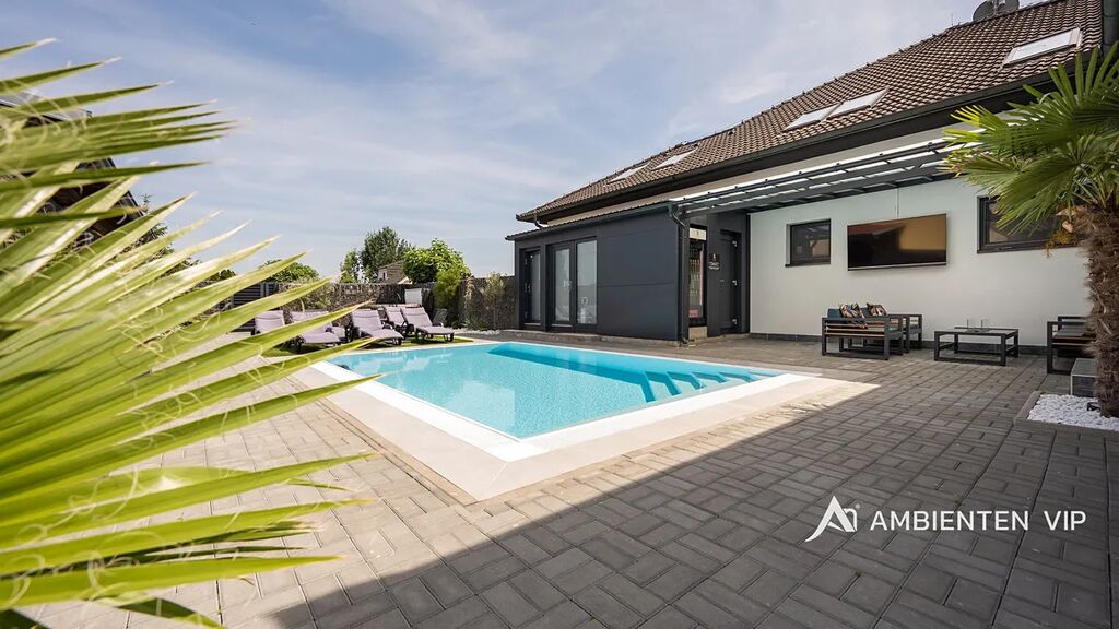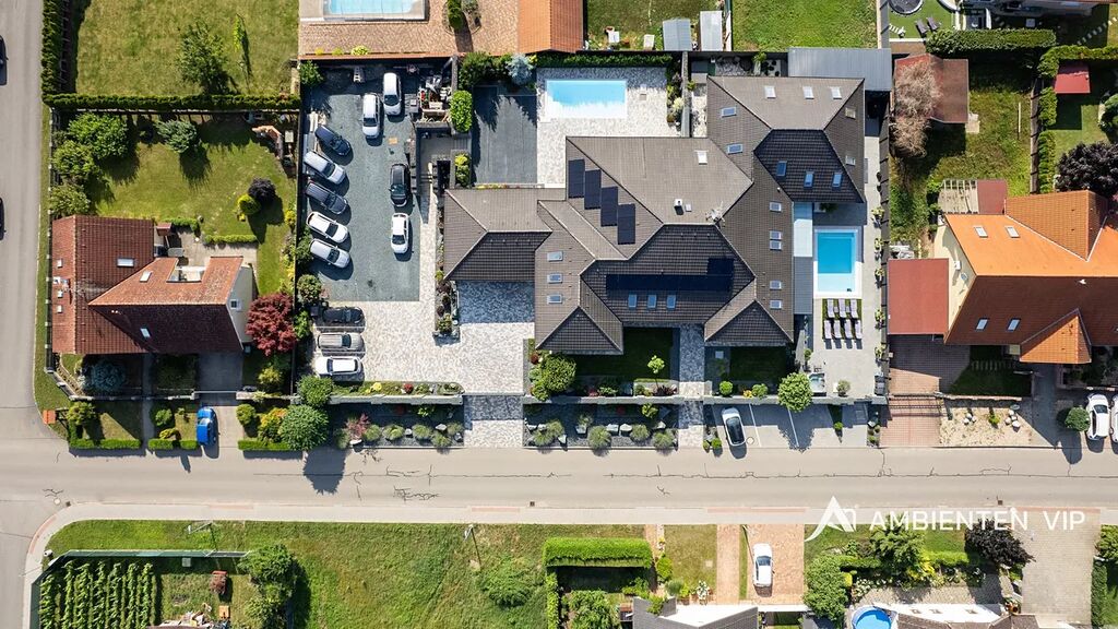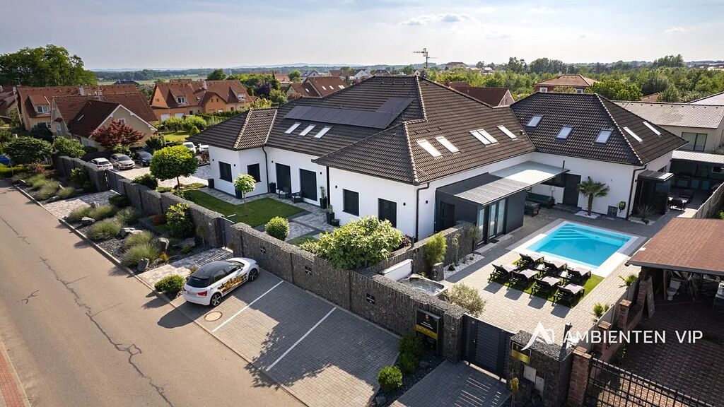 AMBIENTEN VIP exkluzivně nabízí výjimečnou víceúčelovou luxusní vilu v obci Šanov na jižní Moravě s provozovaným ubytováním, rozsáhlým wellness zázemím a moderními technologiemi. Objekt o celkové užitné ploše 974 m² se nachází na pozemku o velikosti 2 035 m².