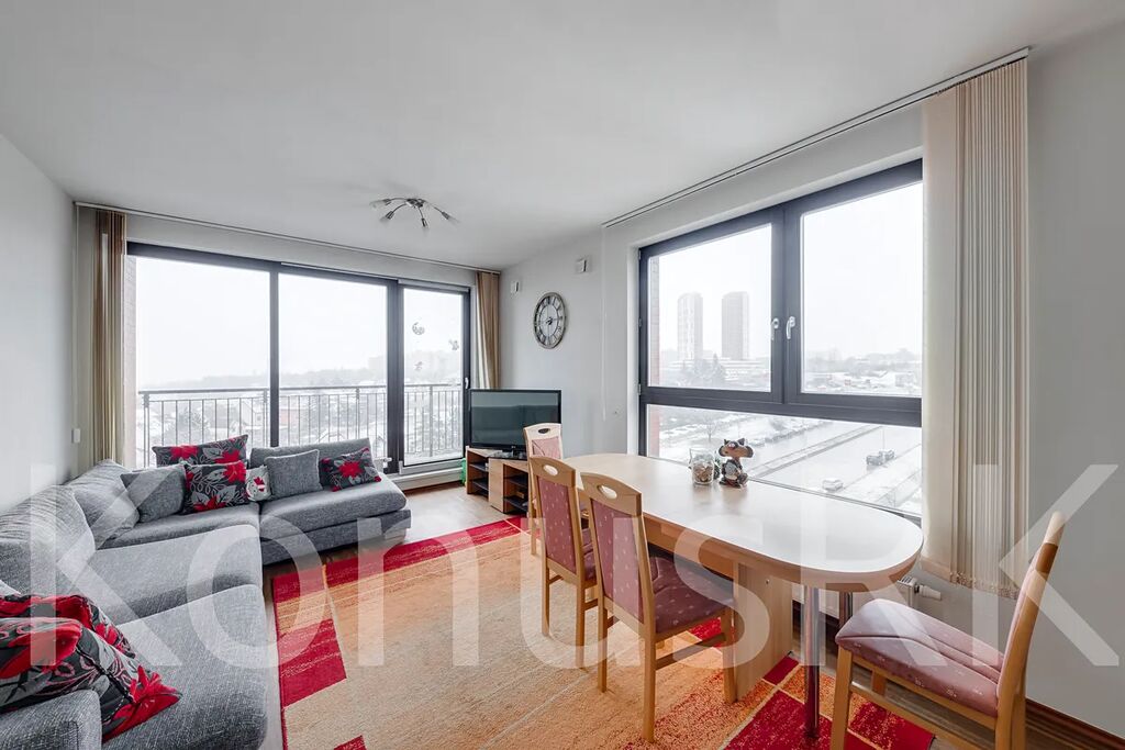Dispozice bytu zahrnuje světlý obývací pokoj s plně vybavenou kuchyňskou linkou, dvě ložnice, koupelnu se sprchovým koutem a toaletou, samostatné WC a vstupní chodbu s dostatkem úložného prostoru. K bytu náleží balkon s příjemným výhledem do vnitrobloku.