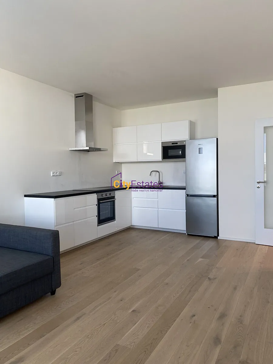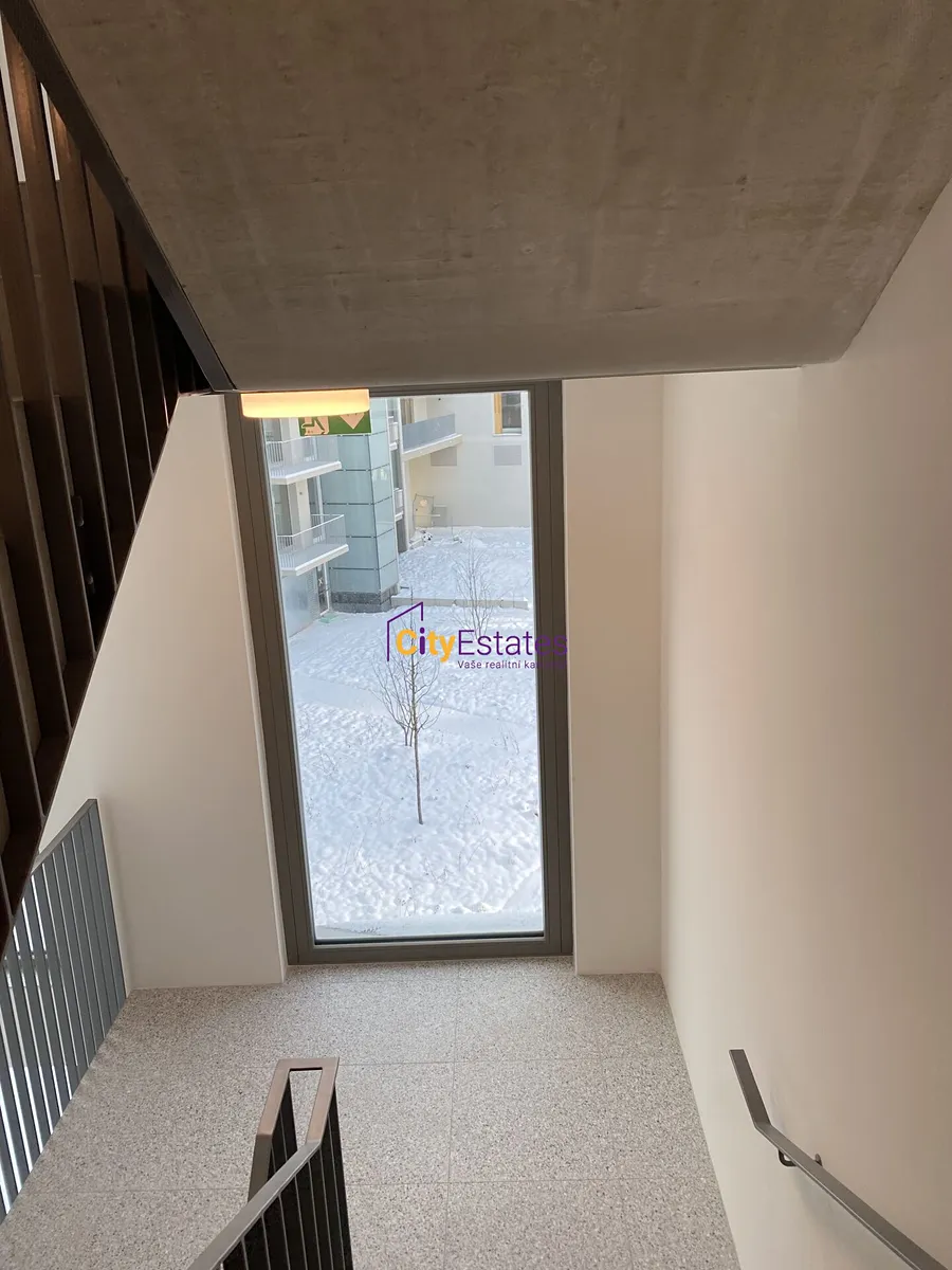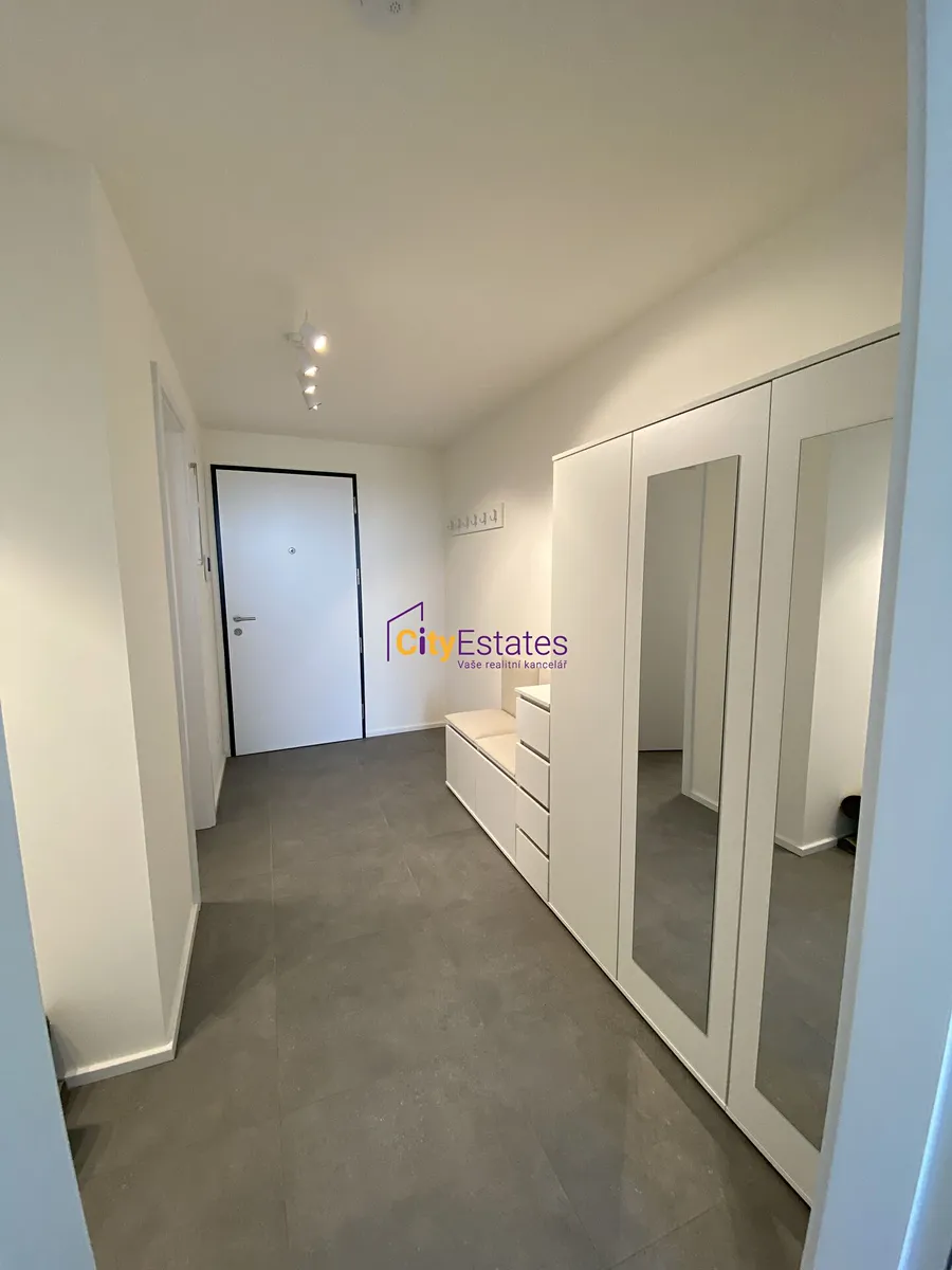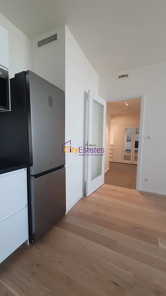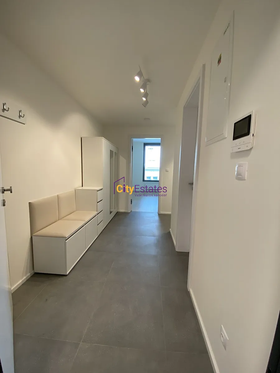 Luxusně vybavený byt s celkovou plochou 55,7m2 se nachází ve 4NP. Umístění v rámci komplexu a uspořádání bytu naleznete v obrazové dokumentaci. Obývací pokoj je vybaven novou kuchyňskou linkou IKEA s kvalitními spotřebiči jako je lednice s mrazákem, varná deska, trouba, digestoř, mikrovlnná trouba a myčka na nádobí. Dále je zde sedací souprava, konferenční stolek, TV stolek a jídelní stůl se židlemi. Obývací pokoj a ložnice mají dřevěnou podlahu a okna obou místností jsou opatřena elektricky ovládanými venkovními žaluziemi. Předsíň, koupelna a chodba je osazena velkoformátovou šedou dlažbou. V předsíni se nachází praktická stěna poskytující množství úložného prostoru. V ložnici je další šatní skříň se zrcadlem a manželská postel s oddělenými matracemi. Ve velmi vhodně řešené koupelně se sprchovým koutem, zařízené sanitou Villeroy&Boch a Grohe, je připraven prostor pro pračku a sušičku. Toaleta je součástí koupelny. Komfort bydlení zajišťuje i rekuperační jednotka. V ceně nájmu je garážové stání v 1PP domu a sklep o výměře 1,8m2.