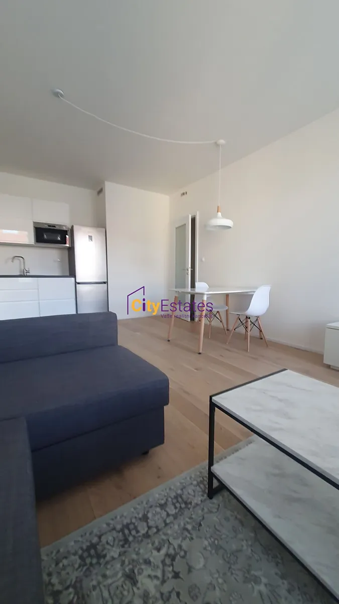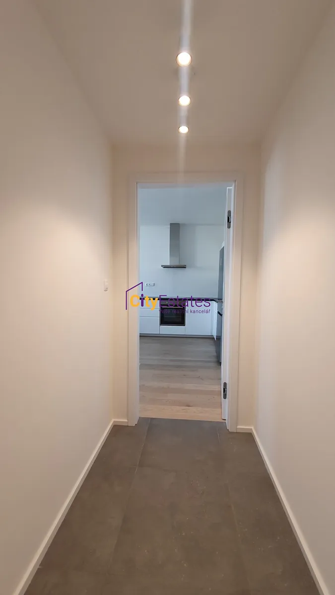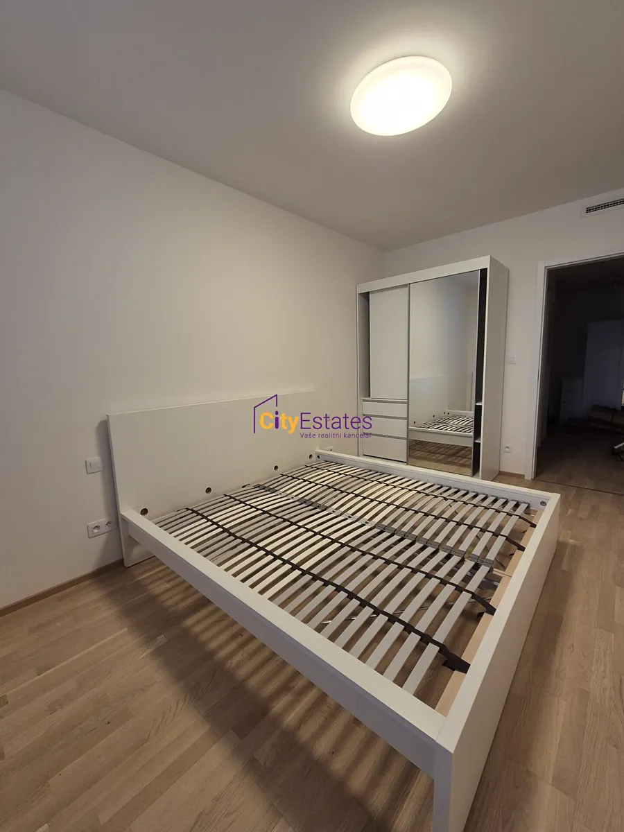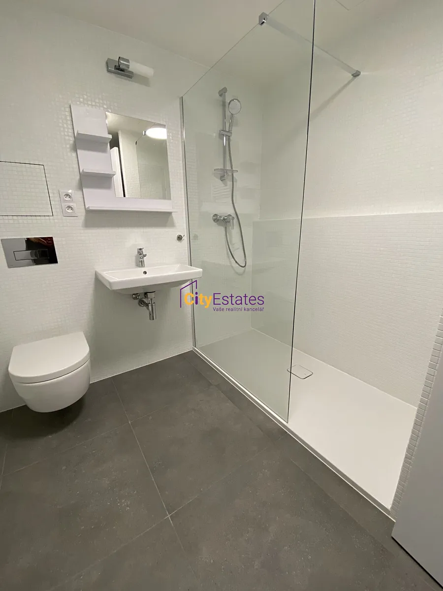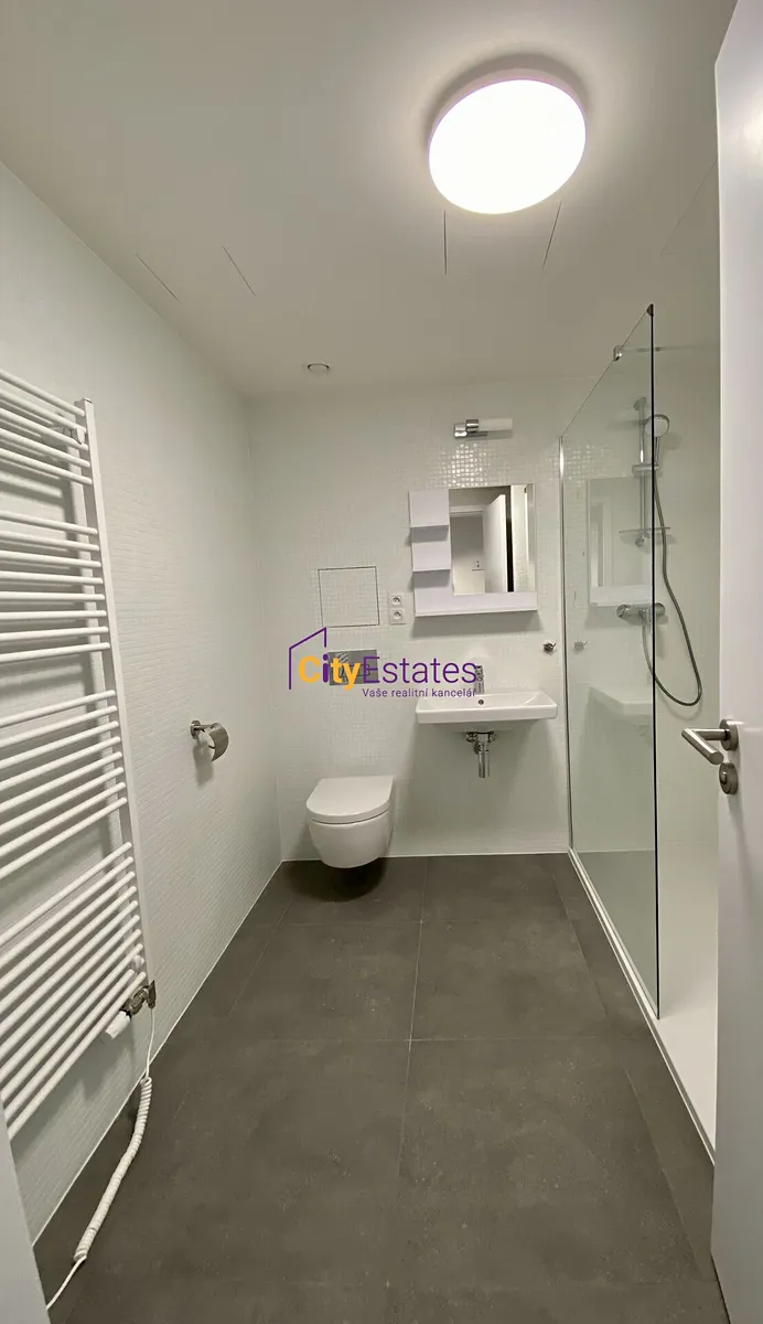 Luxusně vybavený byt s celkovou plochou 55,7m2 se nachází ve 4NP. Umístění v rámci komplexu a uspořádání bytu naleznete v obrazové dokumentaci. Obývací pokoj je vybaven novou kuchyňskou linkou IKEA s kvalitními spotřebiči jako je lednice s mrazákem, varná deska, trouba, digestoř, mikrovlnná trouba a myčka na nádobí. Dále je zde sedací souprava, konferenční stolek, TV stolek a jídelní stůl se židlemi. Obývací pokoj a ložnice mají dřevěnou podlahu a okna obou místností jsou opatřena elektricky ovládanými venkovními žaluziemi. Předsíň, koupelna a chodba je osazena velkoformátovou šedou dlažbou. V předsíni se nachází praktická stěna poskytující množství úložného prostoru. V ložnici je další šatní skříň se zrcadlem a manželská postel s oddělenými matracemi. Ve velmi vhodně řešené koupelně se sprchovým koutem, zařízené sanitou Villeroy&Boch a Grohe, je připraven prostor pro pračku a sušičku. Toaleta je součástí koupelny. Komfort bydlení zajišťuje i rekuperační jednotka. V ceně nájmu je garážové stání v 1PP domu a sklep o výměře 1,8m2.