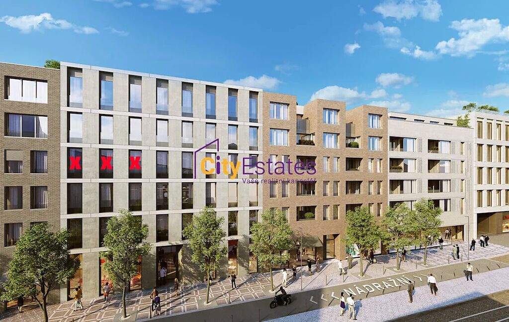 Budova má 6 nadzemních a 3 podzemní podlaží. Byt je v ulici Nádražní, u tramvajové zastávky „Na Knížecí“ naproti ulice Na Valentince.