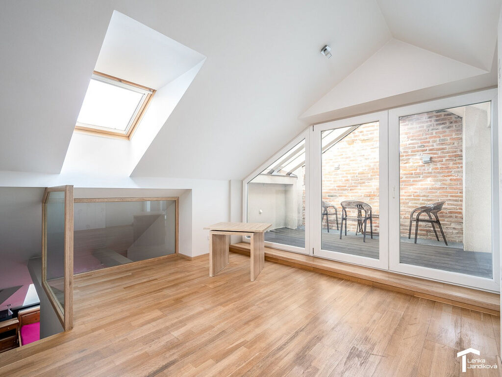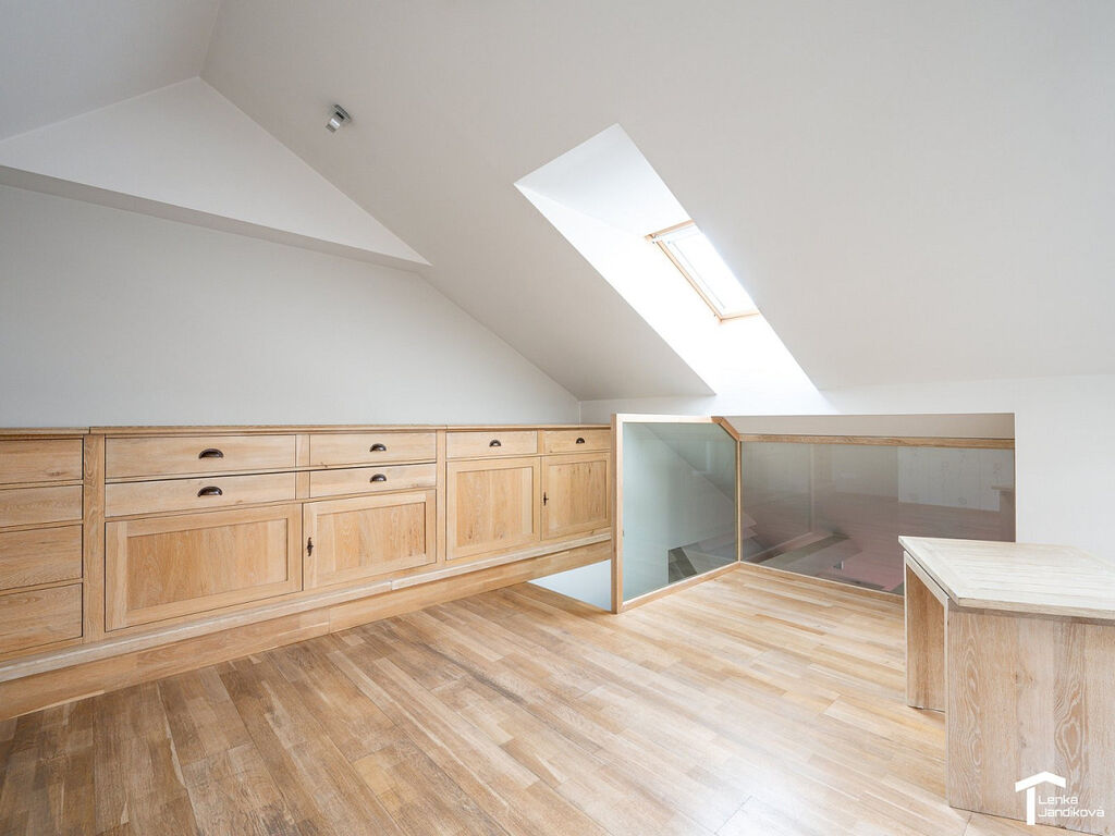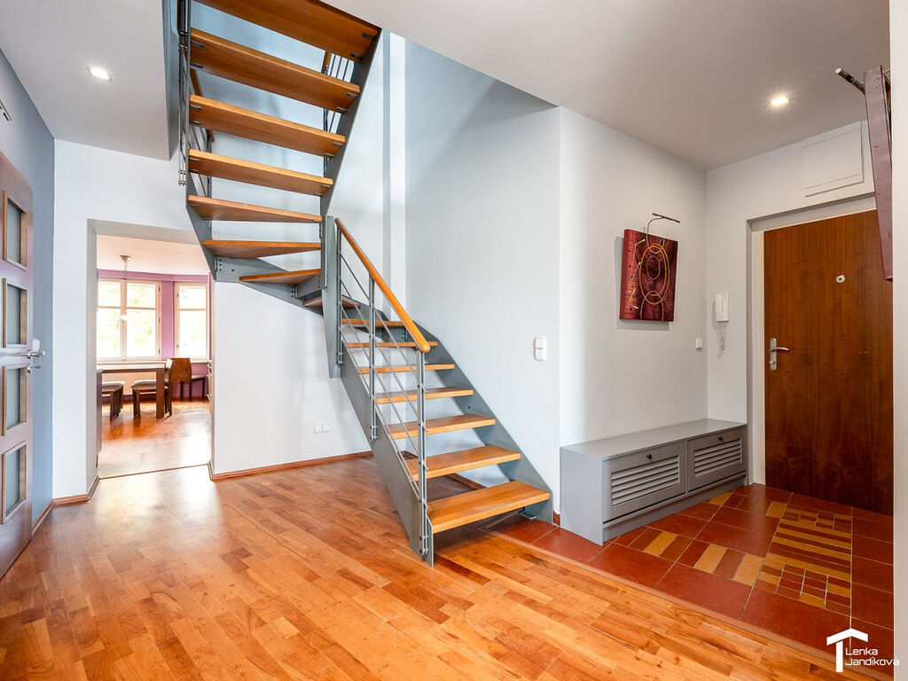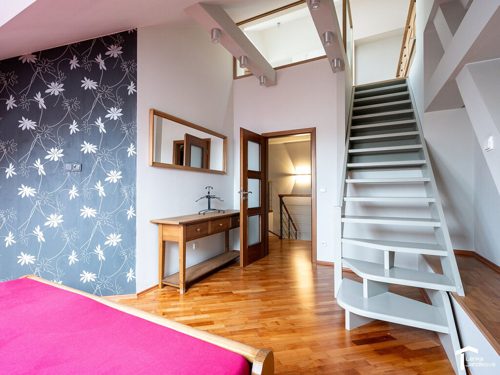 Pokud hledáte k pronájmu ojedinělý byt s nadstandardní výměrou, tak bych vám ráda přestavila tento mezonetový byt 4+kk. Bytová jednotka o celkové výměře 153m² je rozložená do třech podlaží a nachází se ve 4. NP zděného domu v Jiráskově ulici v centru města. Byt je pro pronájem částečně vybavený.