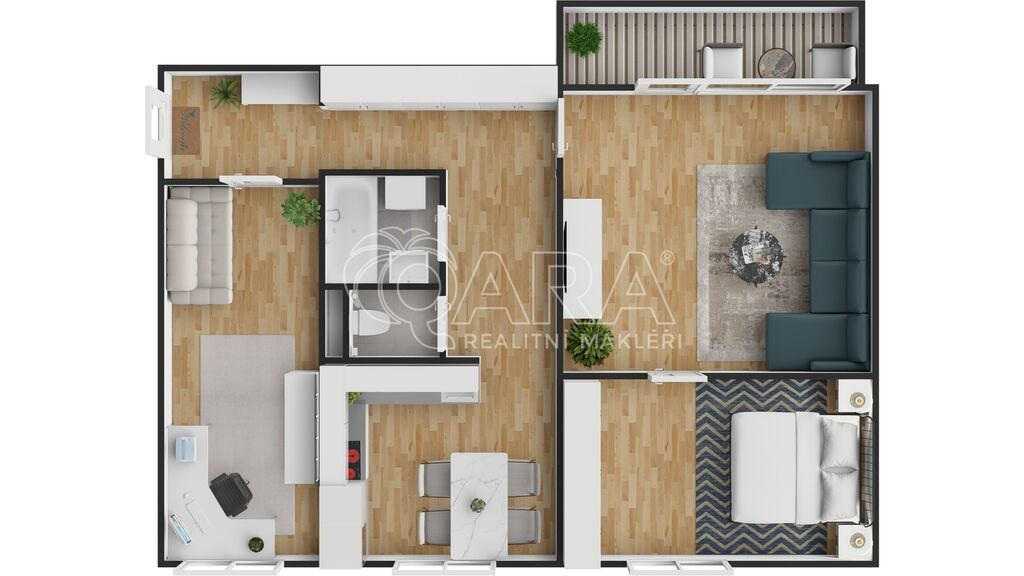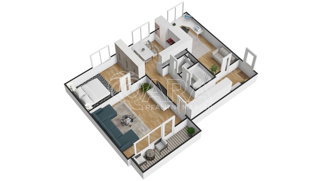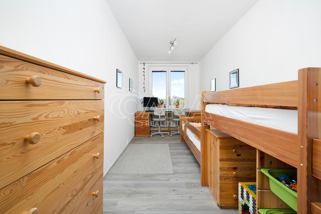 Byt disponuje třemi neprůchozími pokoji o velikostech 19, 15 a 12 m², což zajišťuje maximální soukromí a prostor pro každého člena rodiny. Kuchyně o velikosti 10 m2 je vybavena moderní kuchyňskou linkou s vestavnými značkovými spotřebiči značky Whirpool. Jádro je zděné, koupelna disponuje vanou, WC je samostatně.