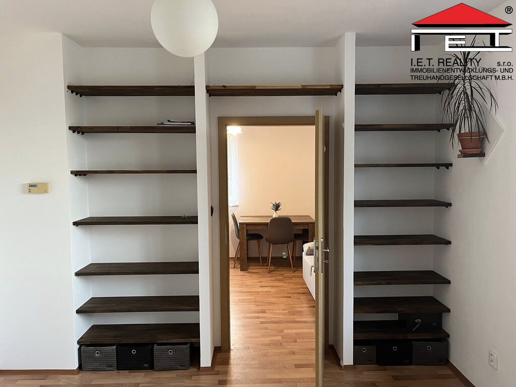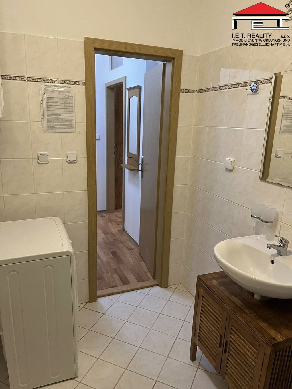 Dispozičně se skládá z předsíně, prostorné kuchyně, kde je vkusná rohová kuchyňská linka se spotřebiči, z kuchyně se pak vchází do pokoje. Koupelna se sprchovým koutem, wc a pračkou.